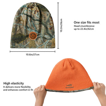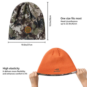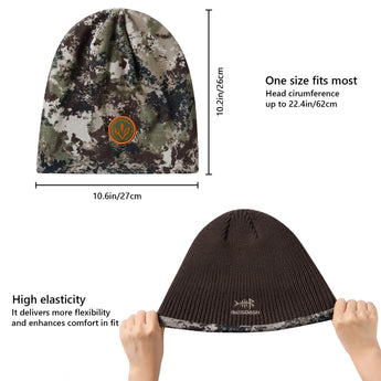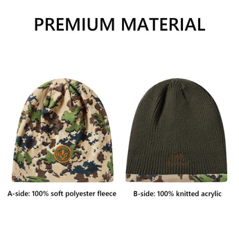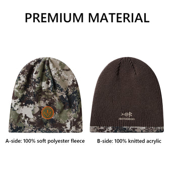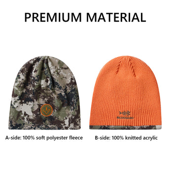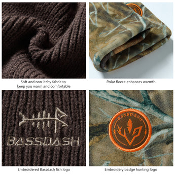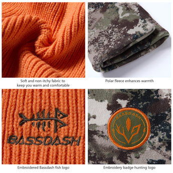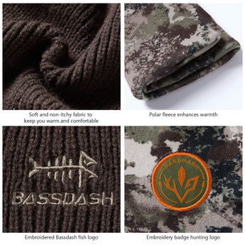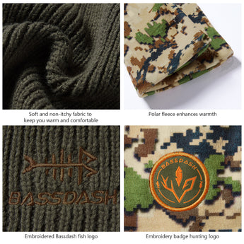 This reversible beanie features a soft acrylic solid side and polyester fleece camo side, offering warmth and charm. With Bassdash's patented camo technology, the mens beanie hat blends seamlessly into various environments, ideal for winter hunts and outdoor activities.