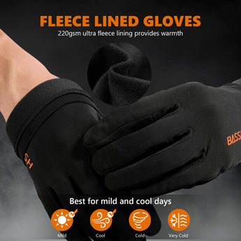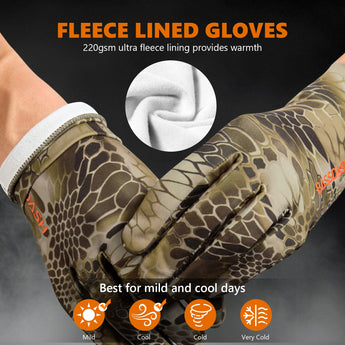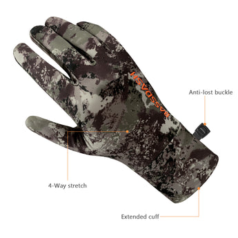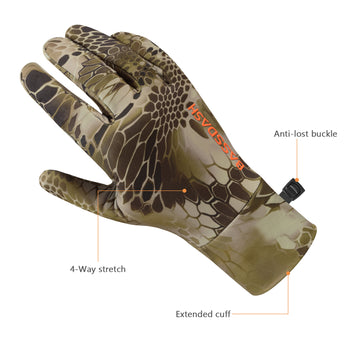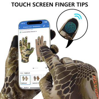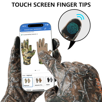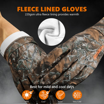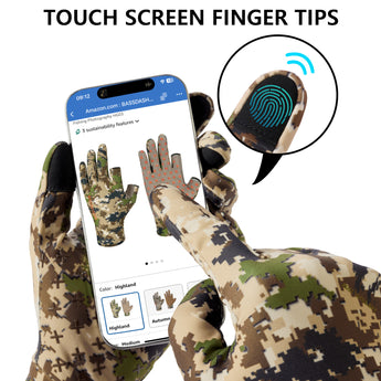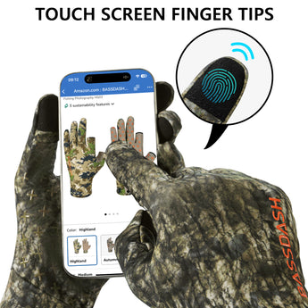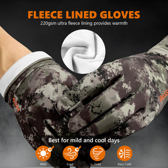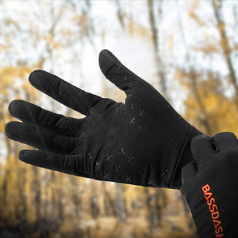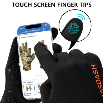 BASSDASH Fleece Gloves combine warmth and dexterity with a 220gsm poly-spandex blend, offering comfort, durability, and a secure silicone-grip palm for handling tools. The touchscreen-compatible thumbs and fingers allow seamless device use, while the lightweight design works solo for early-season hunting or as a liner for extra warmth. Ideal for fishing, hiking, travel, and more.
