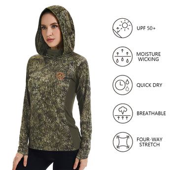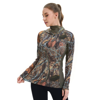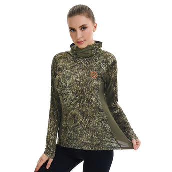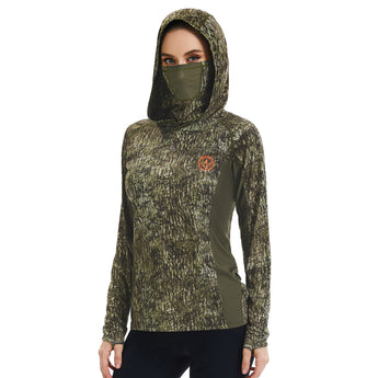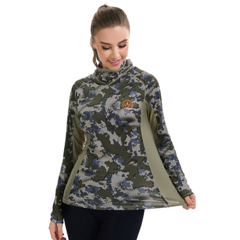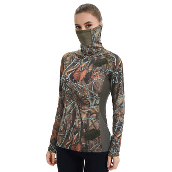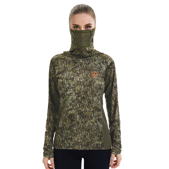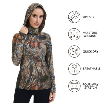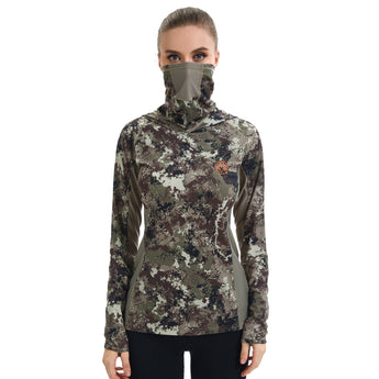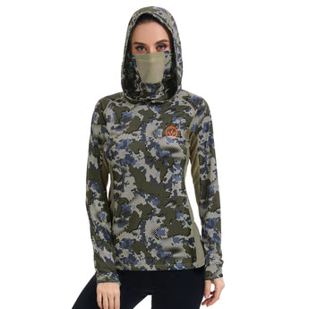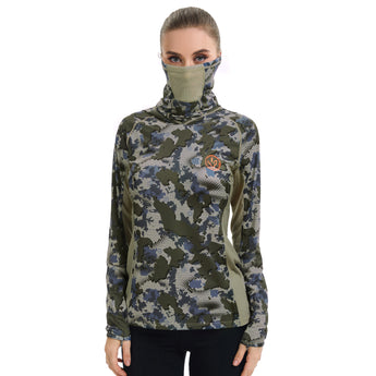 Women’s UPF 50+ Camo Hoodie Shirt with Neck Gaiter FS03W