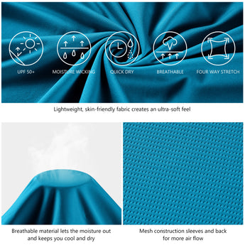 - Made from advanced knitted UV protection 84% Polyester and 16% Spandex fabric