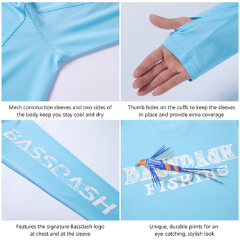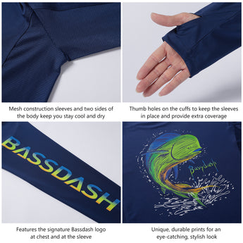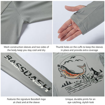 Enjoy ultimate protection and style with our UV Long Sleeve Shirts. The unique fish graphic prints on the back make a statement whether you're on the water or relaxing on the shore. With thumb holes for an extra coverage and mesh panels for enhanced breathability, you'll stay cool and comfortable during all your adventures. Ideal for daily wear and various outdoor activities, this shirt is the perfect gift for any fishing enthusiast.