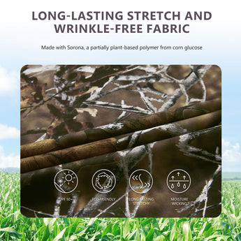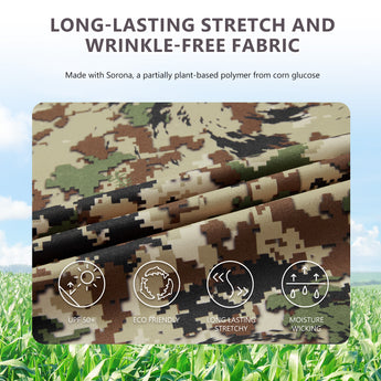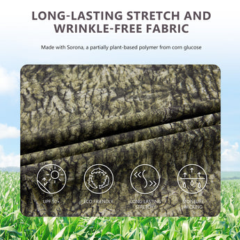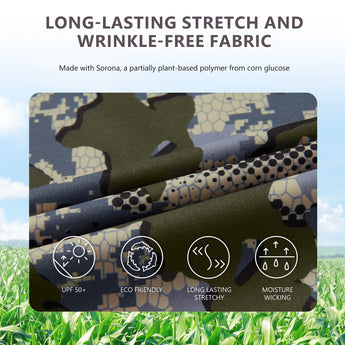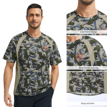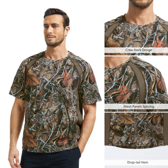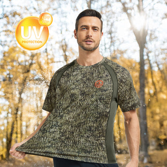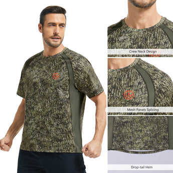BASSDASH men’s performance camo short sleeve shirts are made from a Sorona polyester blend and feature wrinkle-free, long-lasting durability. UPF 50+ sun protection on the mens summer shirts blocks from 98% harmful rays. Mesh panel splicing adds more breathability meanwhile enhances the structural modeling of the shirts. Excellent in your hunting activities, but also suitable for hiking, fishing and other outdoor activities, as well as everyday casual wear.