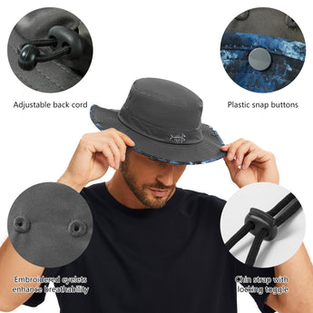This UPF 50+ bucket hat combines breathable fabric, premium craftsmanship, and a patterned under-brim for performance, comfort, and style. Ideal for hiking, cycling, fishing, gardening, and more - embrace the sun in confidence.