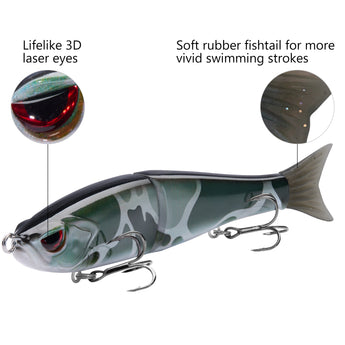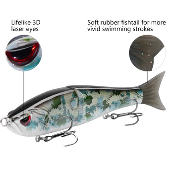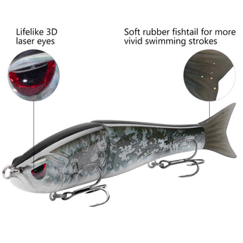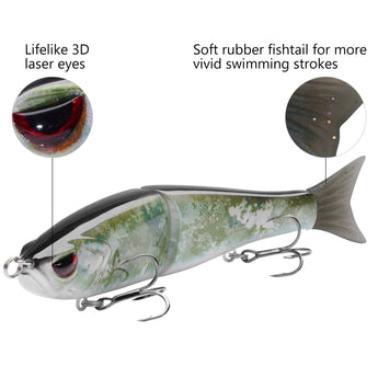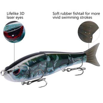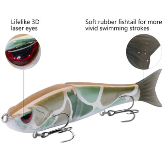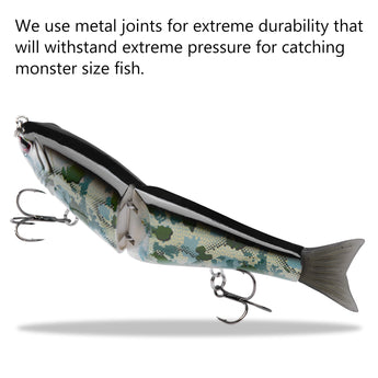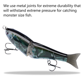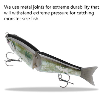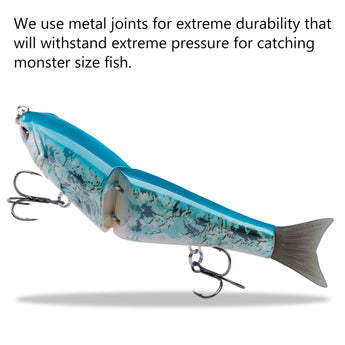 - The hard swimbaits made of heavy duty ABS material can withstand the wear and tear from fighting fish; Metal Joints for extreme durability that will withstand pressure for catching monster size fish