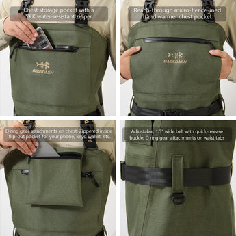 All Bassdash waders are covered by our six-month warranty. During this period, If your waders leak because of material and/or craftsmanship, it will be replaced quickly at no charge. This guarantee does not apply to normal wear and tear, accidental damage, corrosion, or general neglect. Each pair of Bassdash waders is tank tested to ensure that it is totally waterproof. However, if a leak occurs due to accidental puncture, please use the enclosed repair kit including materials and instructions to repair it. Please understand that waders aren't indestructible and must be used in a reasonable manner to the type of fishing they were designed for.