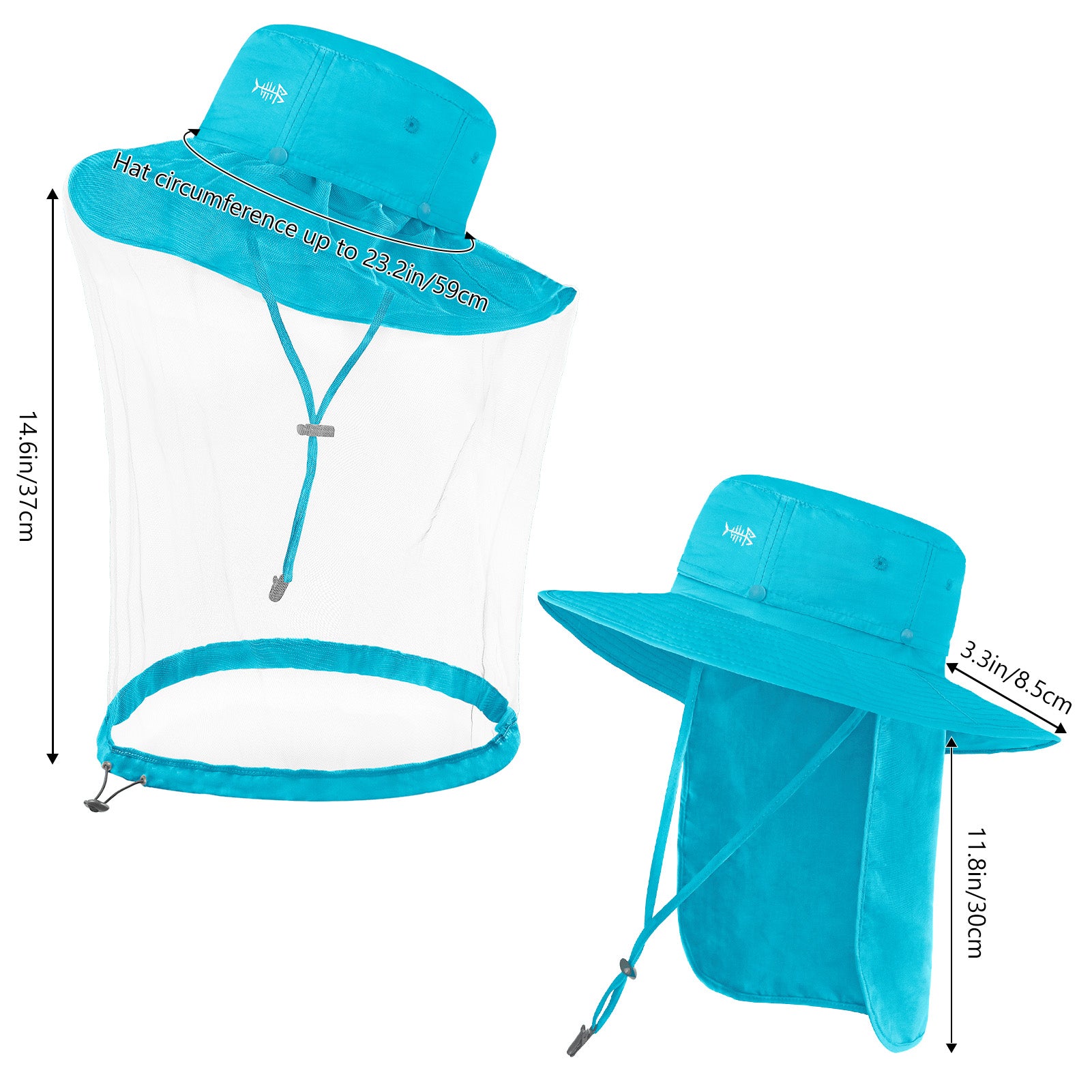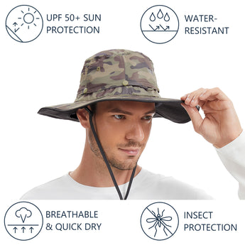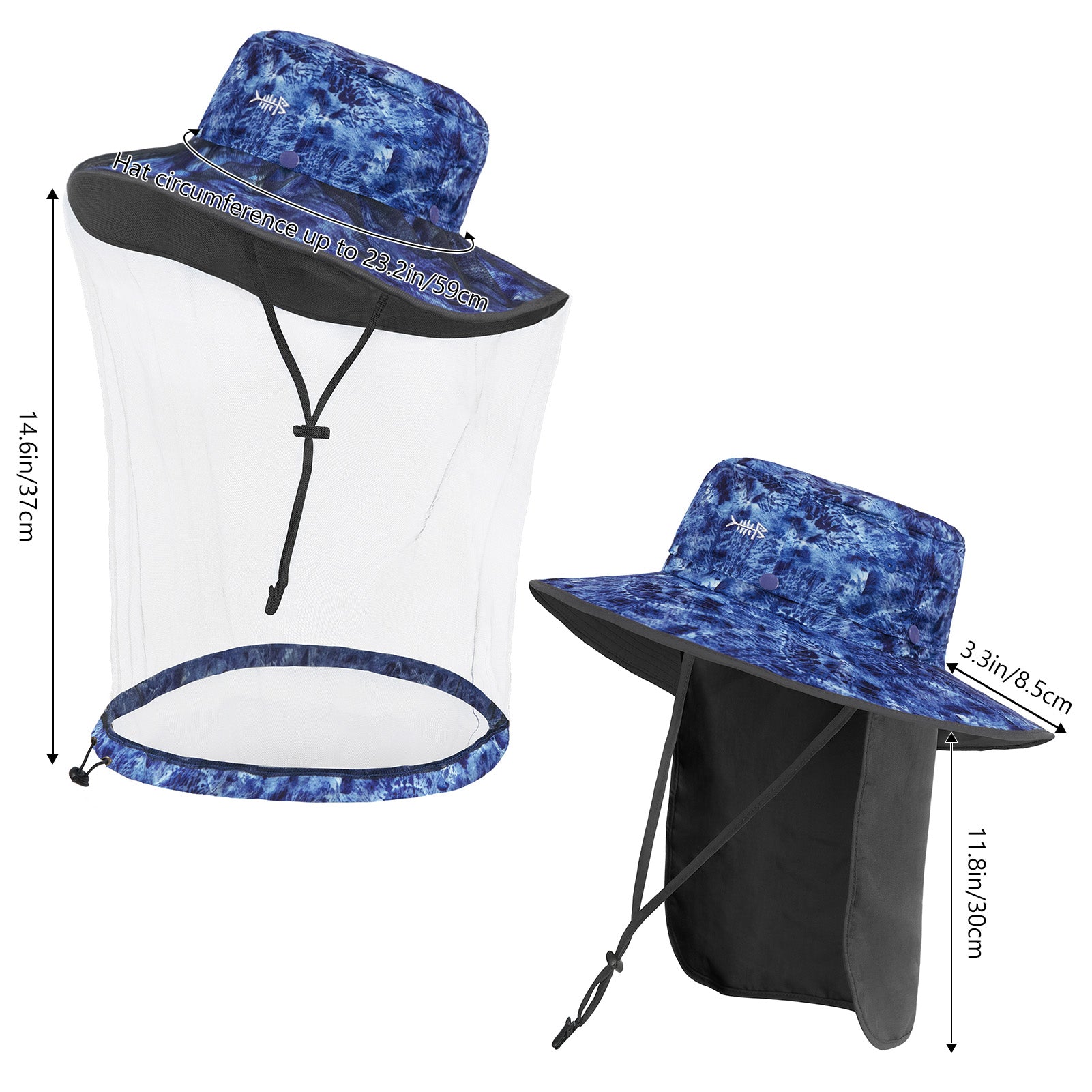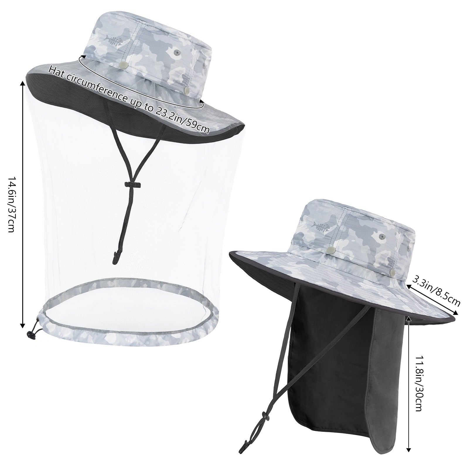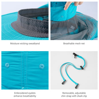• 3.3in wide brim provides good shade to your ears, as well as your face and head; 11.8in long back flap delivers generous neck protection, and the flap can be stored in the hidden pocket under the brim.