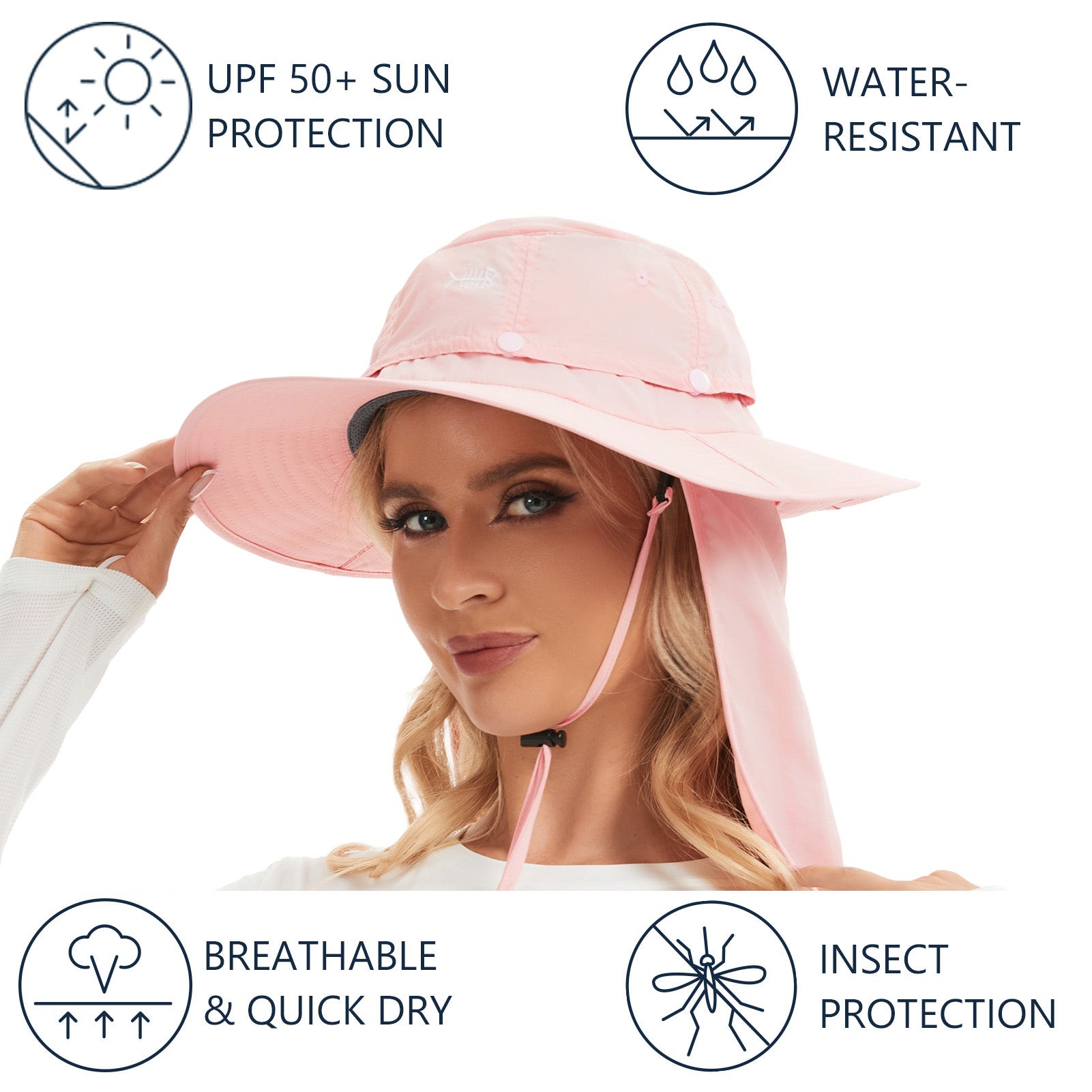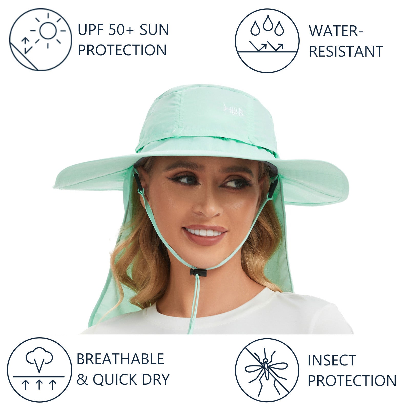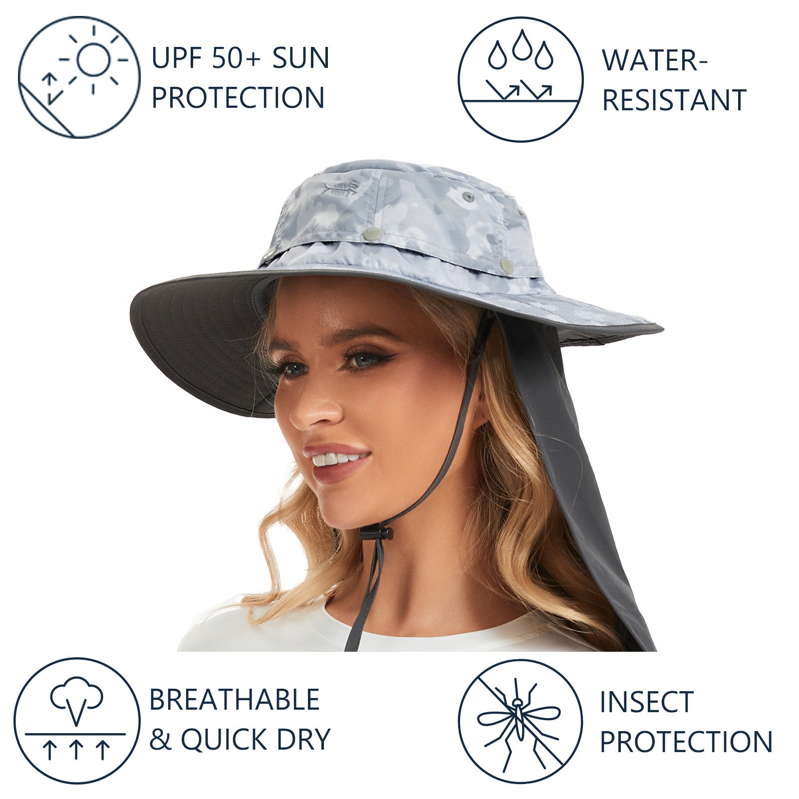 • 3.3in wide brim provides good shade to your ears, as well as your face and head; 11.8in long back flap delivers generous neck protection, and the flap can be stored in the hidden pocket under the brim.