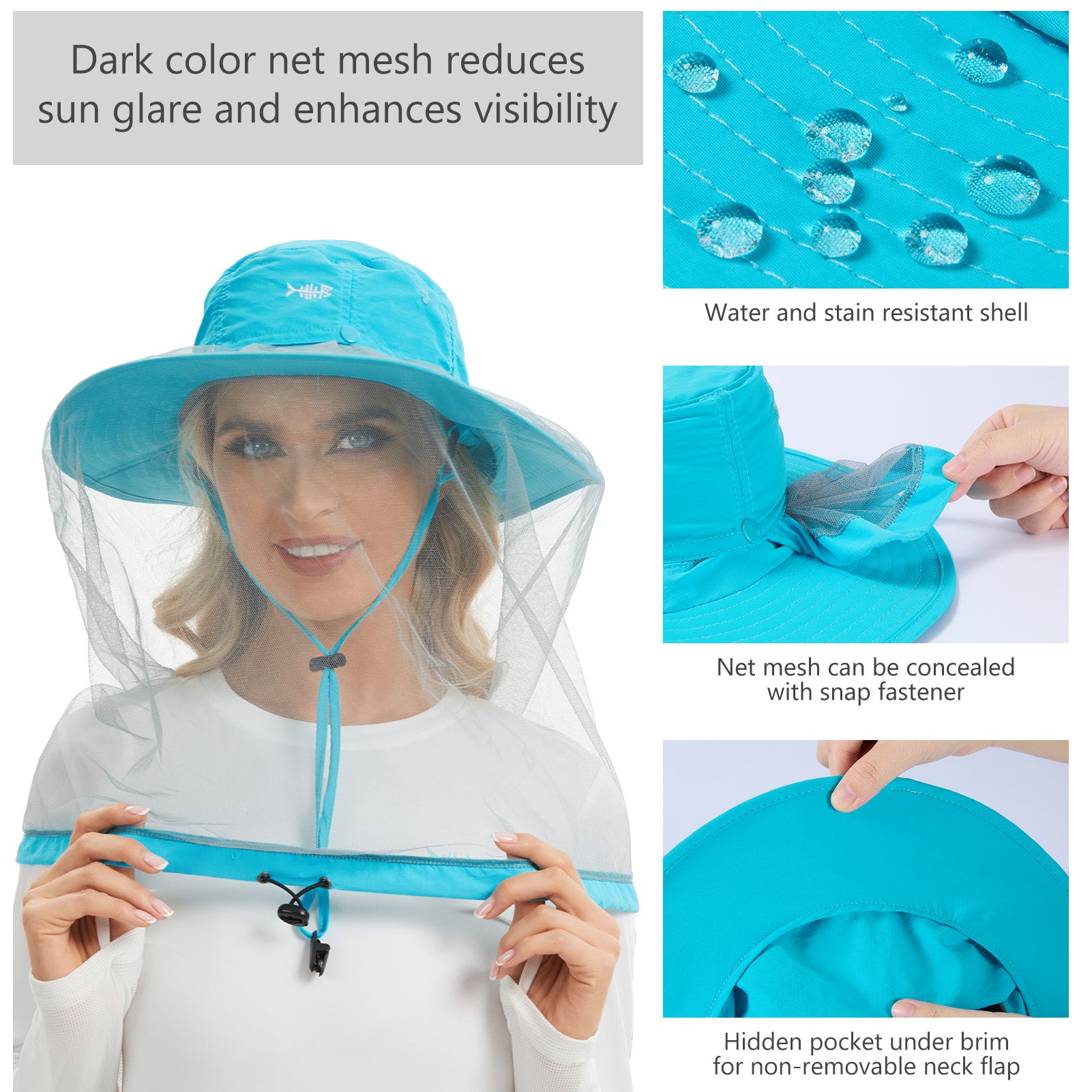 • With UPF 50+ protection, the mosquito hat can be used as a sun hat which blocks 98% harmful UVA and UVB rays.