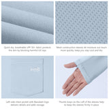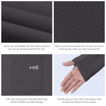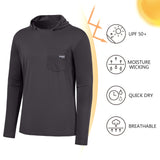 Our UPF men pocket hoodie shirts are made from 84% Polyester and 16% Spandex - these shirts offer perfect stretchability and durability. Mesh panels under the sleeves and at two sides of the hat enhance breathability and wick moisture. A comfortable hood provides extra sun protection for your neck, face, and ears, while thumb loops on the cuffs ensure the sleeves stay in place for added coverage. A left-side chest pocket for convenient storage and enhances your look. Perfect for daily wear and outdoor activities like fishing, hiking, kayaking, and more.