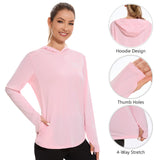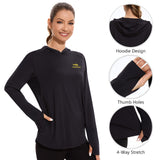 Features a hood with a ponytail hole to shield your neck from sunburn, while thumb holes prevent sleeves from riding up, ensuring continuous hand coverage.