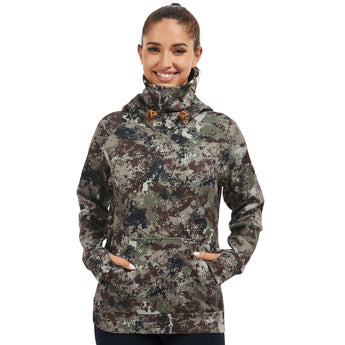 The BASSDASH Women's Fleece Hoodie is a warm and comfortable choice for outdoor activities, featuring a built-in neck gaiter and adjustable drawcord. With a convenient kangaroo pocket and water and stain resistance, it's perfect for cool, drizzling days spent fishing.