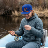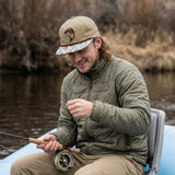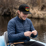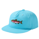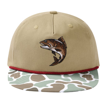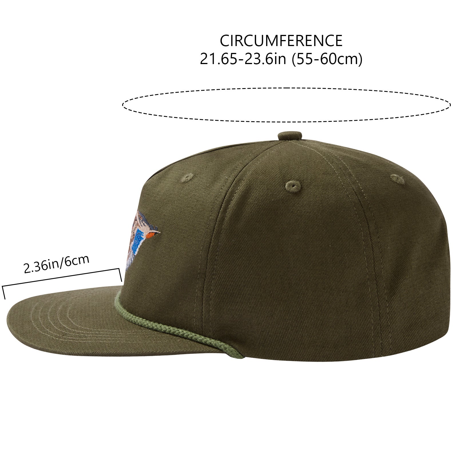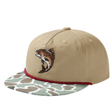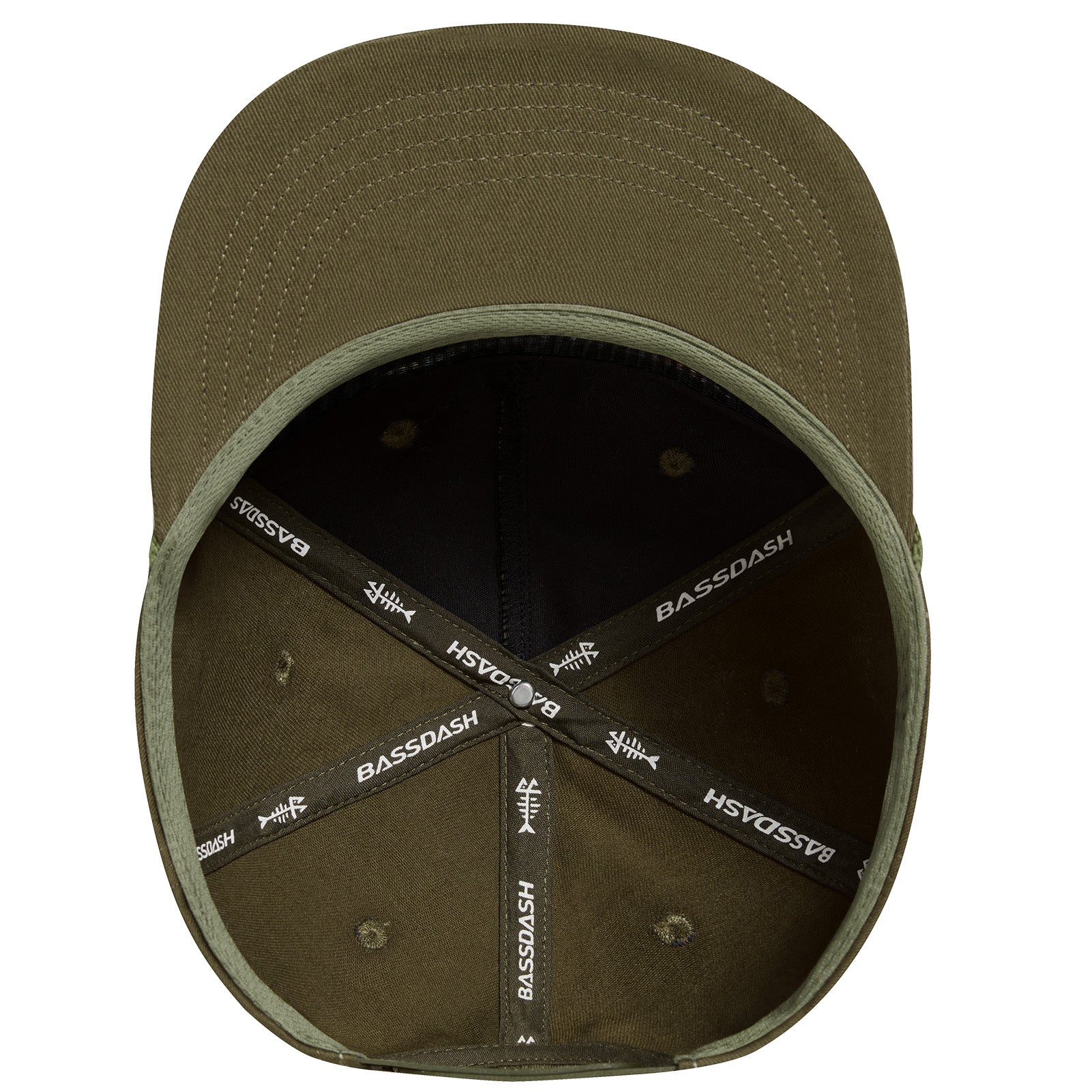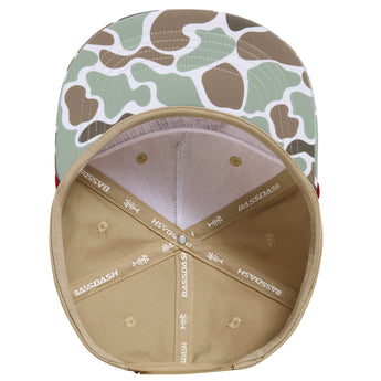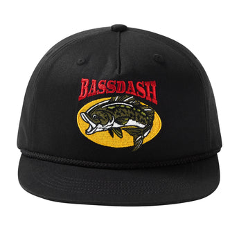 This BASSDASH flat-brim cap, featuring bass, mallard, and trout embroidery, makes an ideal gift for outdoorsmen. The five-panel, soft-top design conforms to your head for a modern look. A built-in sweatband wicks away moisture, and ventilation eyelets keep you cool. The adjustable snap closure offers a customizable fit for most adults. Perfect for outdoor activities like fishing, hunting, hiking, kayaking, cycling, climbing, and more.