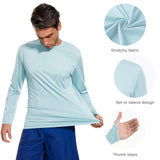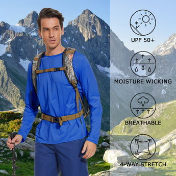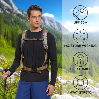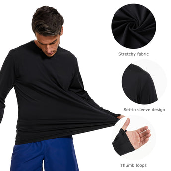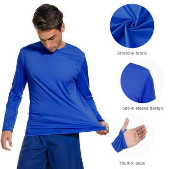The long sleeves combined with UPF 50+ protection effectively block out 98% of harmful UV rays. Quick-drying and moisture-wicking abilities efficiently manage sweat, keeping you cool. Unique knitting technique endows it with ample elasticity to maintain its shape and prevent deformation. Thumb loops keep the long sleeves in place; Tagless crew neck design for chafe-free comfort. Perfect for everyday use as well as outdoor pursuits such as fishing, hiking, golfing, camping, kayaking.
