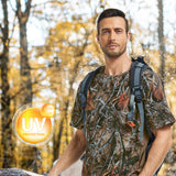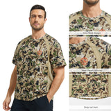 BASSDASH men’s performance camo short sleeve shirts are made from a Sorona polyester blend and feature wrinkle-free, long-lasting durability. UPF 50+ sun protection on the mens summer shirts blocks from 98% harmful rays. Mesh panel splicing adds more breathability meanwhile enhances the structural modeling of the shirts. Excellent in your hunting activities, but also suitable for hiking, fishing and other outdoor activities, as well as everyday casual wear.