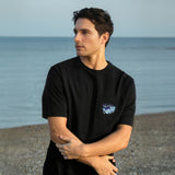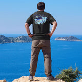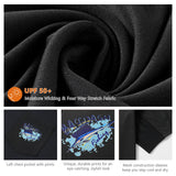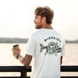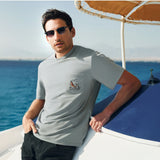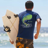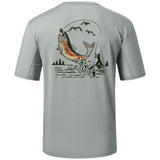 Men's adventure-ready UV shirt with UPF 50+ fabric blocks 98% UVA/UVB rays, featuring a functional chest pocket with bold graphics on the chest pocket and the back. Standout angling-themed graphics on the back and chest pocket blend rugged outdoor vibes with streetwear edge, while the functional chest pocket adds practical storage. A loose athletic cut and 4-way stretch fabric ensure unrestricted movement for casting, hiking, or kayaking.