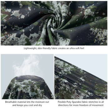 - This long sleeve camo shirt in a feminine cut is a must for ladies¡¯ hunting adventure; The 4-way stretch material and raglan sleeve design improve the flexibility to provide more freedom of movement; The mesh panels on either side of the shirt allow more air flow.