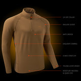 - 1/4 zip mock collar provides high neck coverage that can block out the cold as well as let you open up for venting when you feel hot