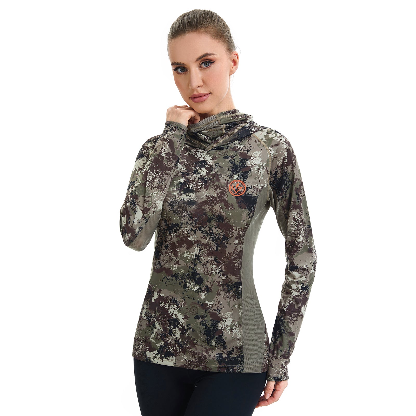 Women’s UPF 50+ Camo Hoodie Shirt with Neck Gaiter FS03W