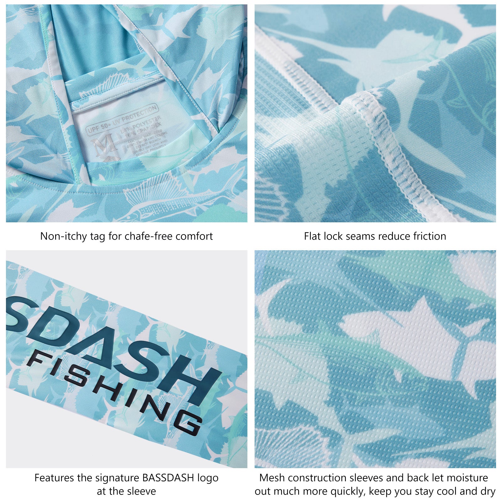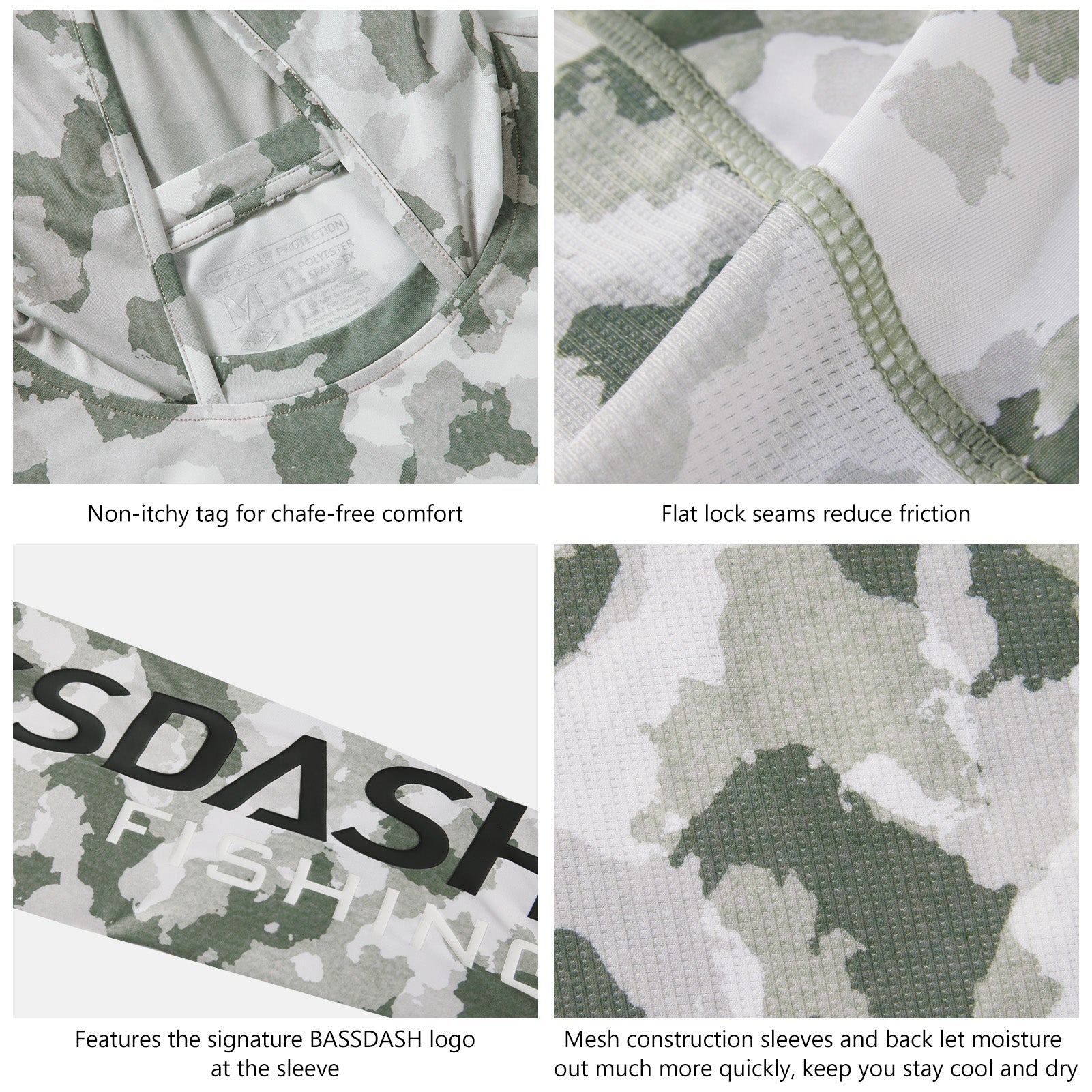 Bassdash sun shirts use advanced knitted UV protection UPF 50+ fabrics, shielding against harmful UV rays during extended outdoor excursions.