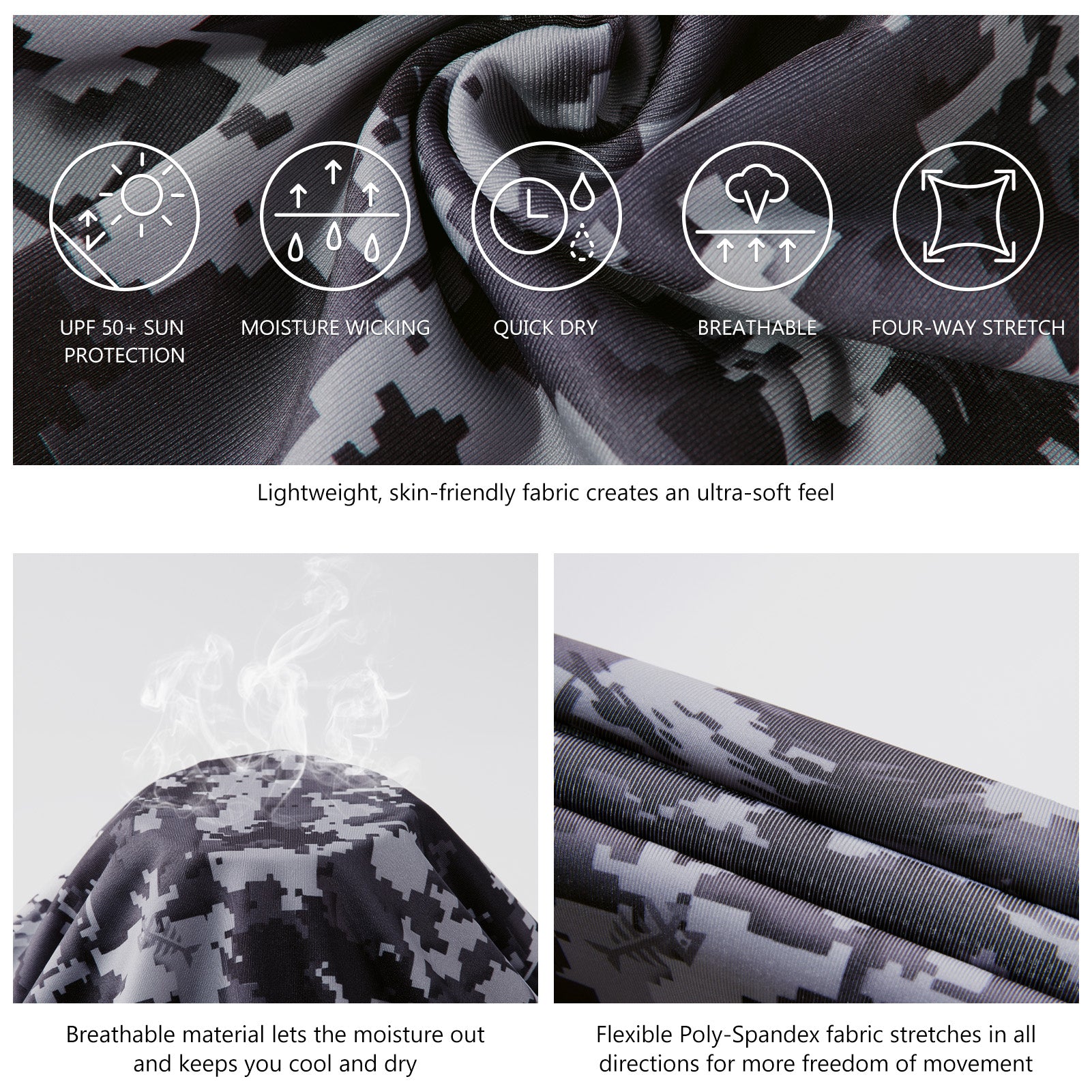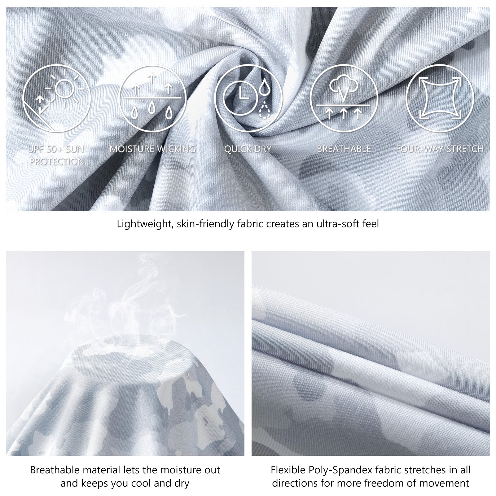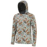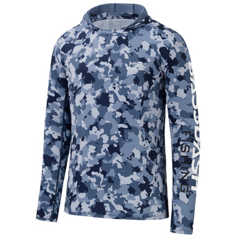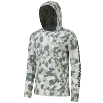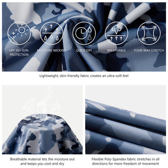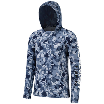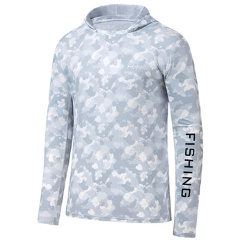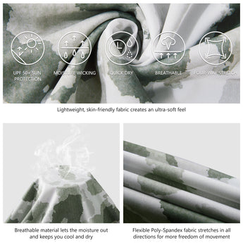 Our long sleeve camo hoodie shirts for men feature a stylish camouflage print. UPF 50+ fabric with a streamlined hood provides reliable protection from harmful UV rays. Made from lightweight, quick-dry, and 4-way stretch material, the shirts ensure excellent breathability, moisture control, and unrestricted movement. Matching camo mesh panels on the back and under the sleeves enhance airflow and keep you cool. Perfect for fishing, hiking, kayaking, biking, hunting, and other outdoor adventures.
