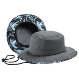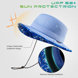 With UPF 50+ rating, breathable fabric, premium construction, and patterned under brim, this bucket sun hat will deliver performance, comfort, and style. It is perfect to wear while you enjoy hiking, riding, fishing, gardening, etc. Get ready to have some fun in the sun! Drawstring at the back for adjustable sizing; Removable chin strap with locking toggle for windy days; Sweatband prevents sweat from getting into your eyes. Designed to be folded easily, it can be conveniently packed into your handbag or backpack. Ideal for all types of outdoor activities; Easy care: hand wash, dry in shade.