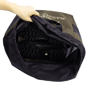 When the waders or boots are inside, the draw-cord can be pulled to close the opening of the bag fully.