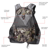- Other features include D-ring gear attachment on the back, Exterior D-rings for accessories on the chest, Molle web gear lash and hemostat docking station, and rod holder loops