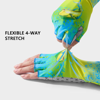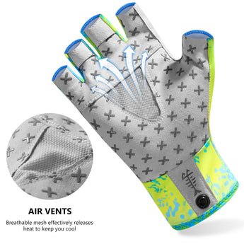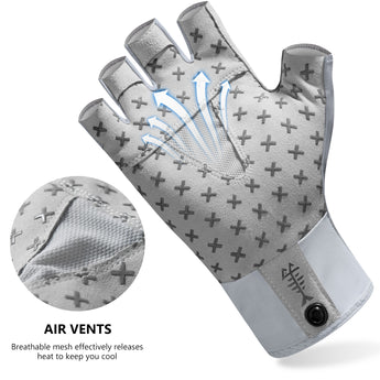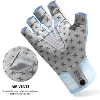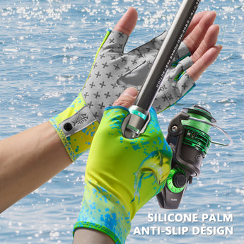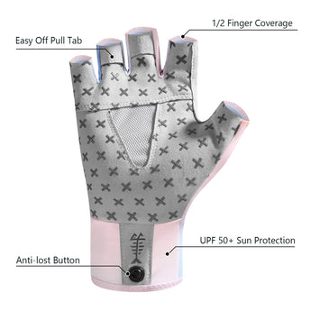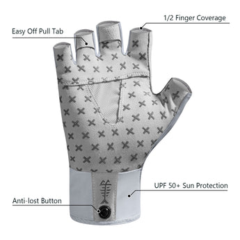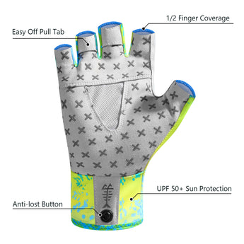 These BASSDASH fishing gloves provide UPF 50+ sun protection with a long cuff to guard against harmful UV rays. Made from lightweight, quick-drying fabric, the breathable gloves offer a comfy fit and airflow. The anti-slip silicone enhances grip, and the pull tabs make them easy to take off, even when wet. With fun fishing-themed prints and a half-finger design that provides great dexterity, they’re ideal for outdoor activities like fishing, kayaking, and hiking.