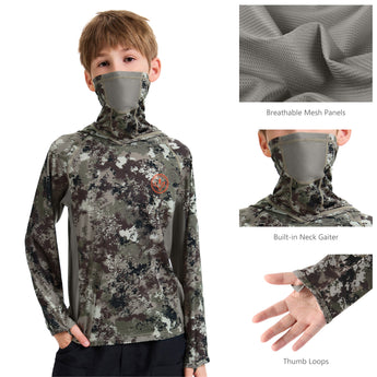 Youth UPF 50+ Hunting Hoodie Shirt with Neck Gaiter FS02Y