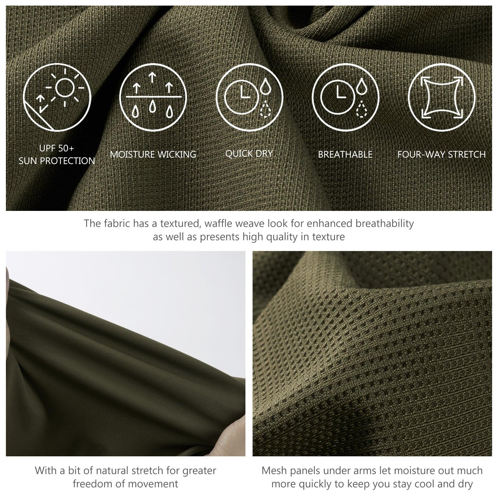 Knitted from advanced 50+ UPF protection, 100% Polyester quick dry fabric that holds the shape well; Almost wrinkle-free, and no pilling; Excellent color retention.