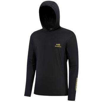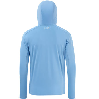 The men long sleeve hooded sun shirt are designed to protect you from the sun's harmful rays to keep you cool and comfortable. Constructed from 84% recycled polyester, hooded sun shirts offer a sustainable, quick-dry, and moisture-wicking solution for comfort throughout the day. Breathable mesh panels under the arms and on the sides promote optimal ventilation. A hood with drawstrings enhance the efficiency of sun protection, while thumb holes secure the sleeves for added coverage. These shirts are perfect for a range of outdoor activities like fishing, kayaking, hiking, and more.