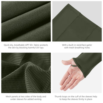 Men’s UPF 50+ Long Sleeve Fishing Hoodie with UV Neck Gaiter FS06M