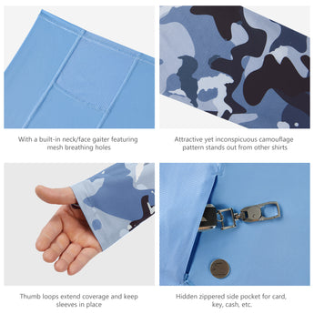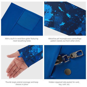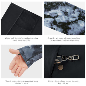M’s UPF 50+ Camo Sleeve Hoodie Shirt with Neck Gaiter