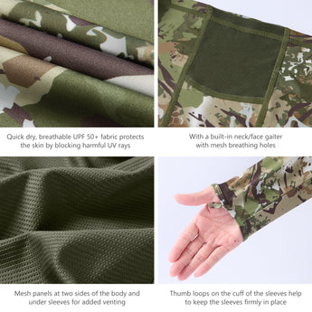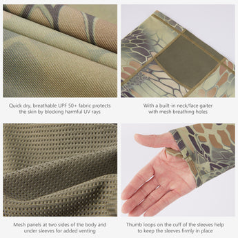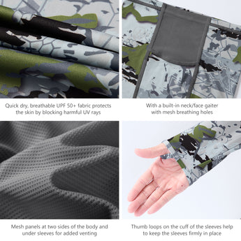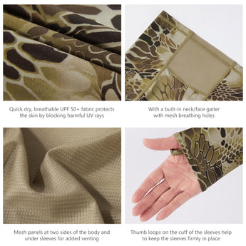 M's UPF 50+ Long Sleeve Camo Hoodie for Hunting with Mask FS06M