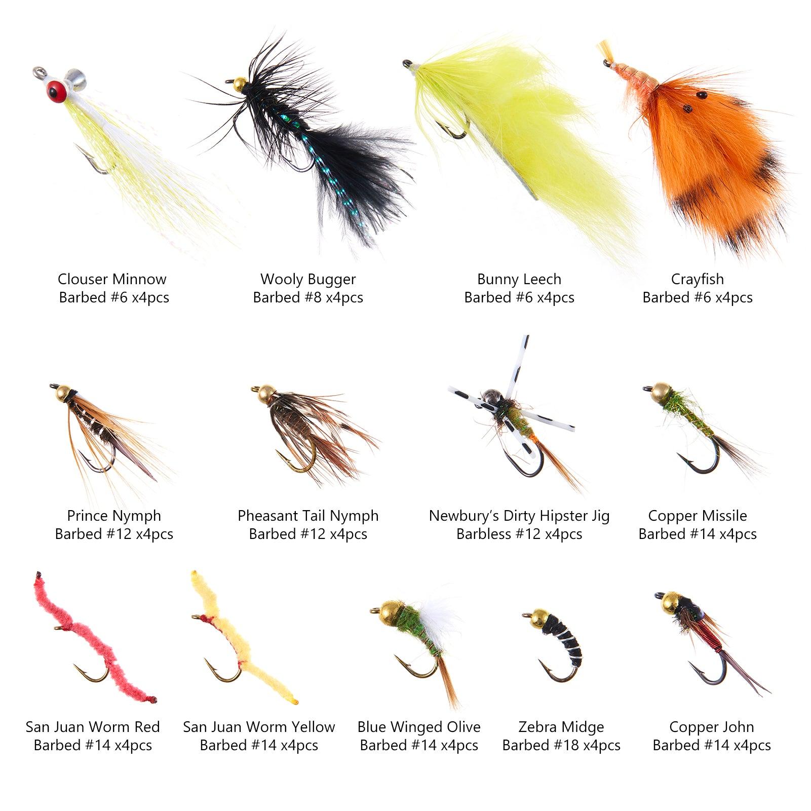 This flies kit comes loaded in a portable fly box; These nymphs and streamers are the most effective and popular wet flies for trout fishing