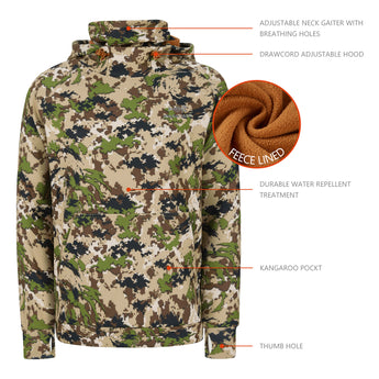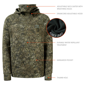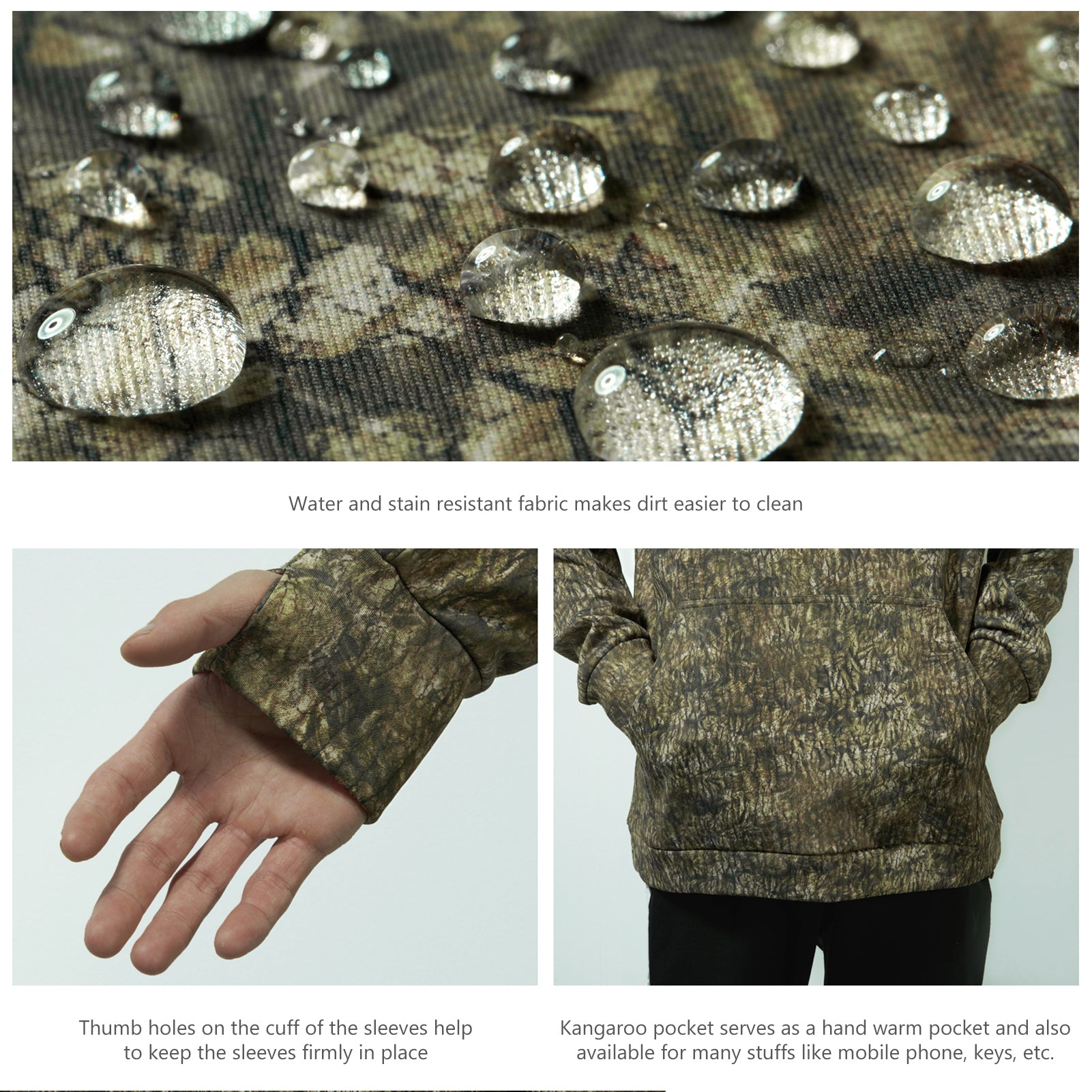 - This hoodie is the perfect all-in-one gear for long-day fishing, hunting from fall to spring, and for any other outdoor sports, like snowboarding, hiking when it is getting cooler and when keeping warm is a necessity.