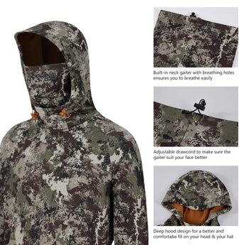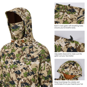 - Three-panel deep hood design for a better and comfortable fit for your head and your hat; The turtleneck and drawcord adjustable hood provide optimal coverage