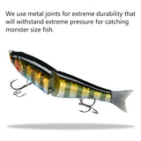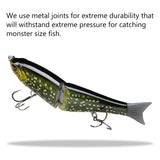 - The hard swimbaits made of heavy duty ABS material can withstand the wear and tear from fighting fish; Metal Joints for extreme durability that will withstand pressure for catching monster size fish