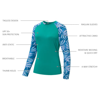 Women’s UPF 50+ Camo Long Sleeve Fishing Shirts