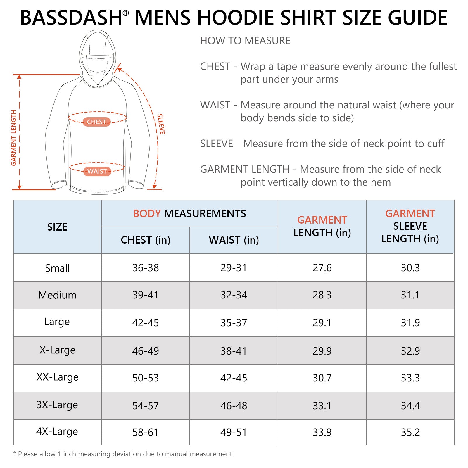 Bassdash apparel products are covered by a 30-day limited warranty. If your apparel fails to perform its intended use due to defects in materials and/or workmanship, we will replace it at no charge. Kindly note that this warranty does not cover damage caused by accident, improper care, negligence, normal wear, or the natural breakdown of colors and materials over extended time and use.