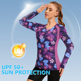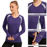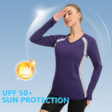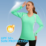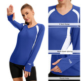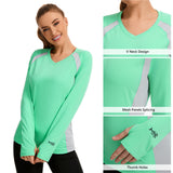 BASSDASH women’s v-neck long sleeve t-shirts are made from a Sorona polyester blend and feature wrinkle-free, long-lasting durability. UPF 50+ sun protection blocks from 98% harmful rays. Thumb holes help keep sleeves in place and provide more coverage for your hand. Mesh panel splicing adds more breathability and enhances the structural modeling of the shirts which visually embellishes the body shape. The women's classic V-neck tee shirts are great for outdoor activities like hiking, fishing, running, and casual wear.