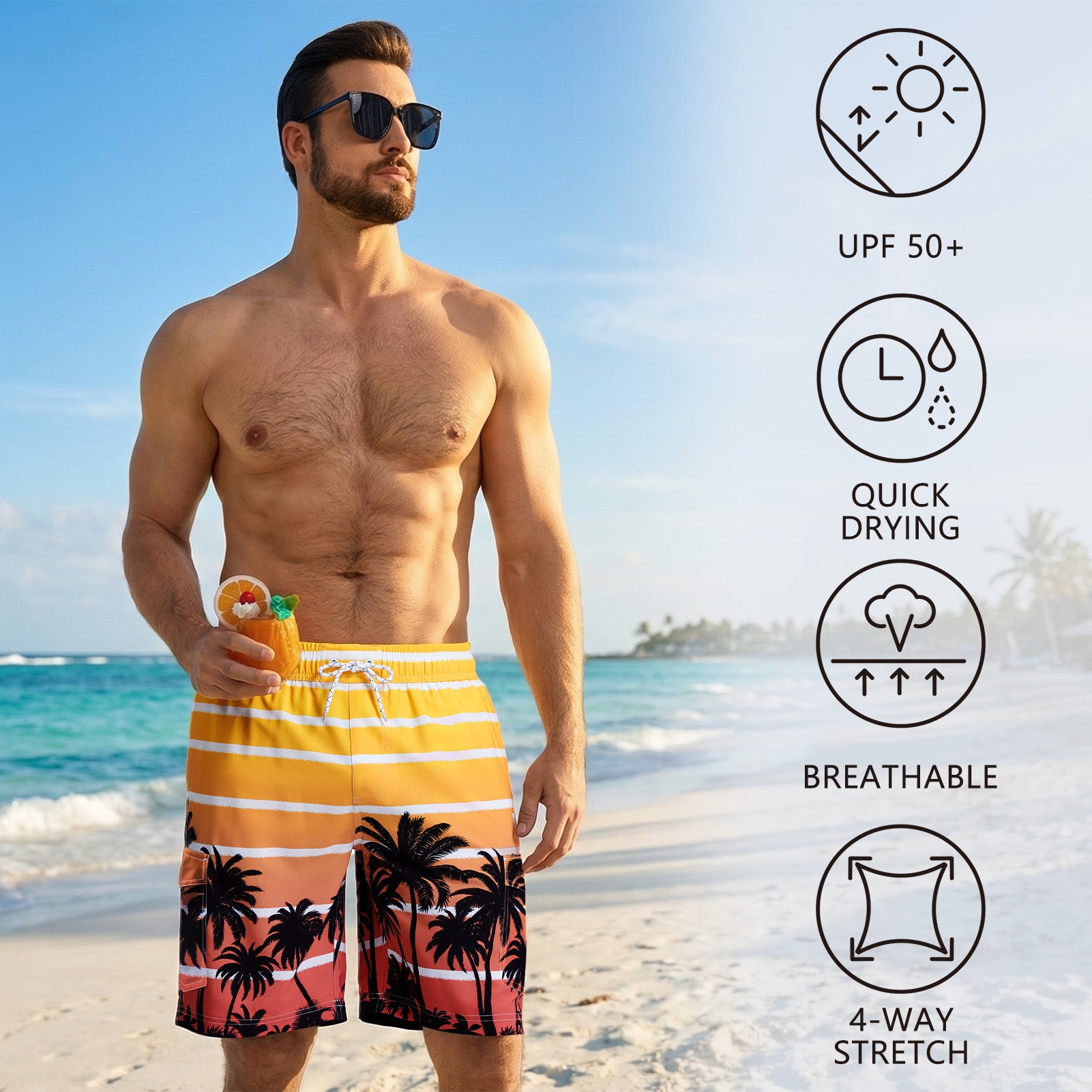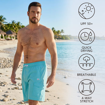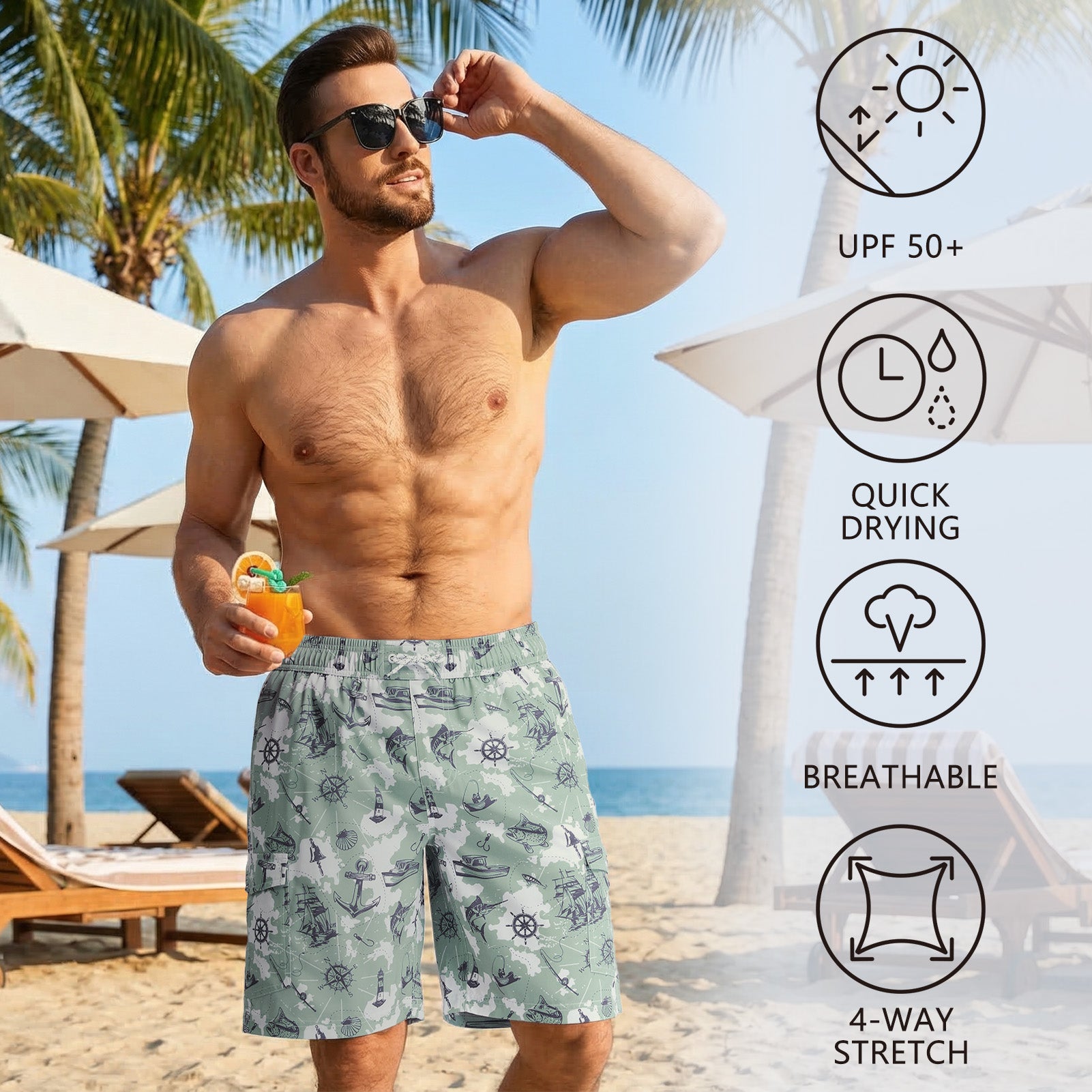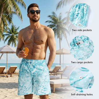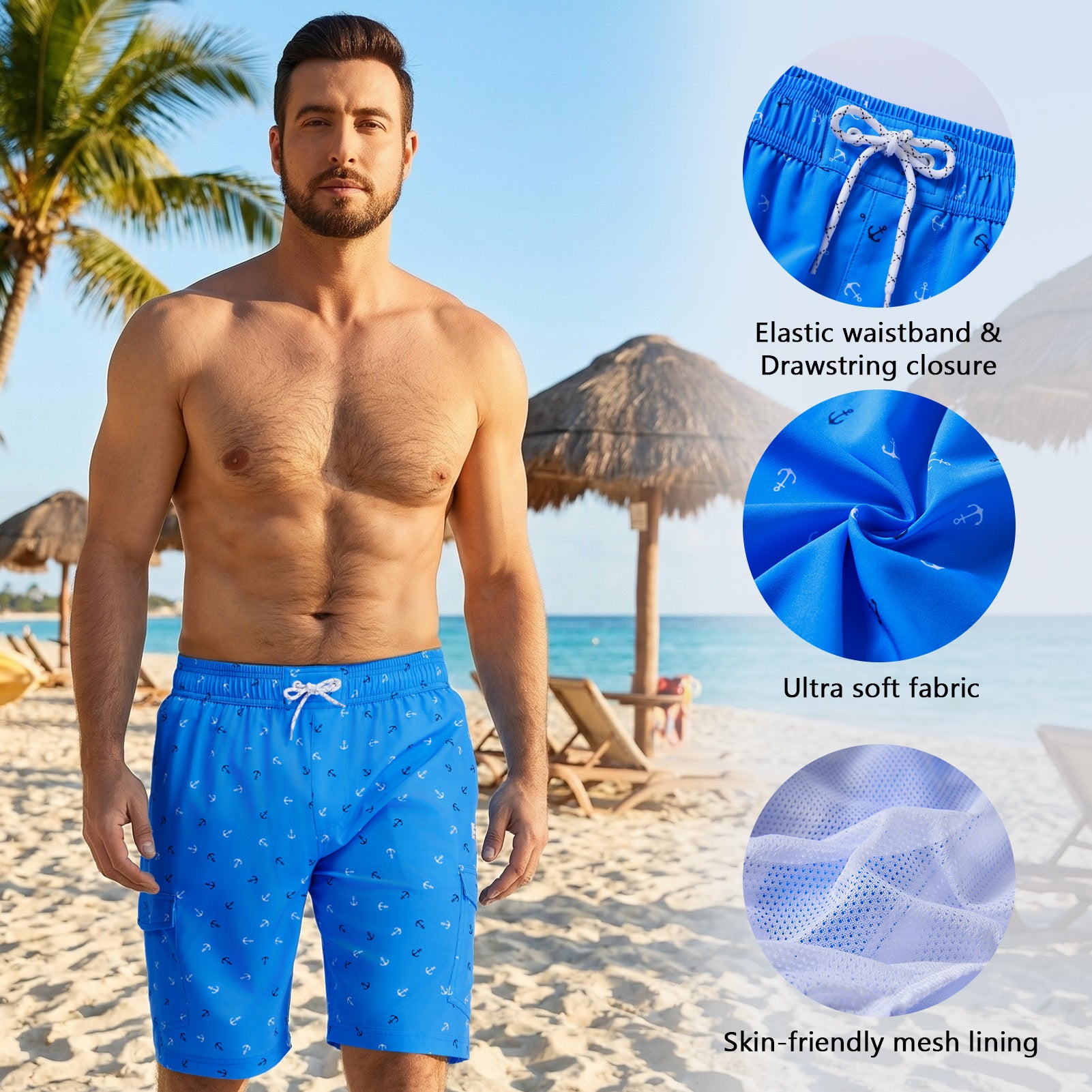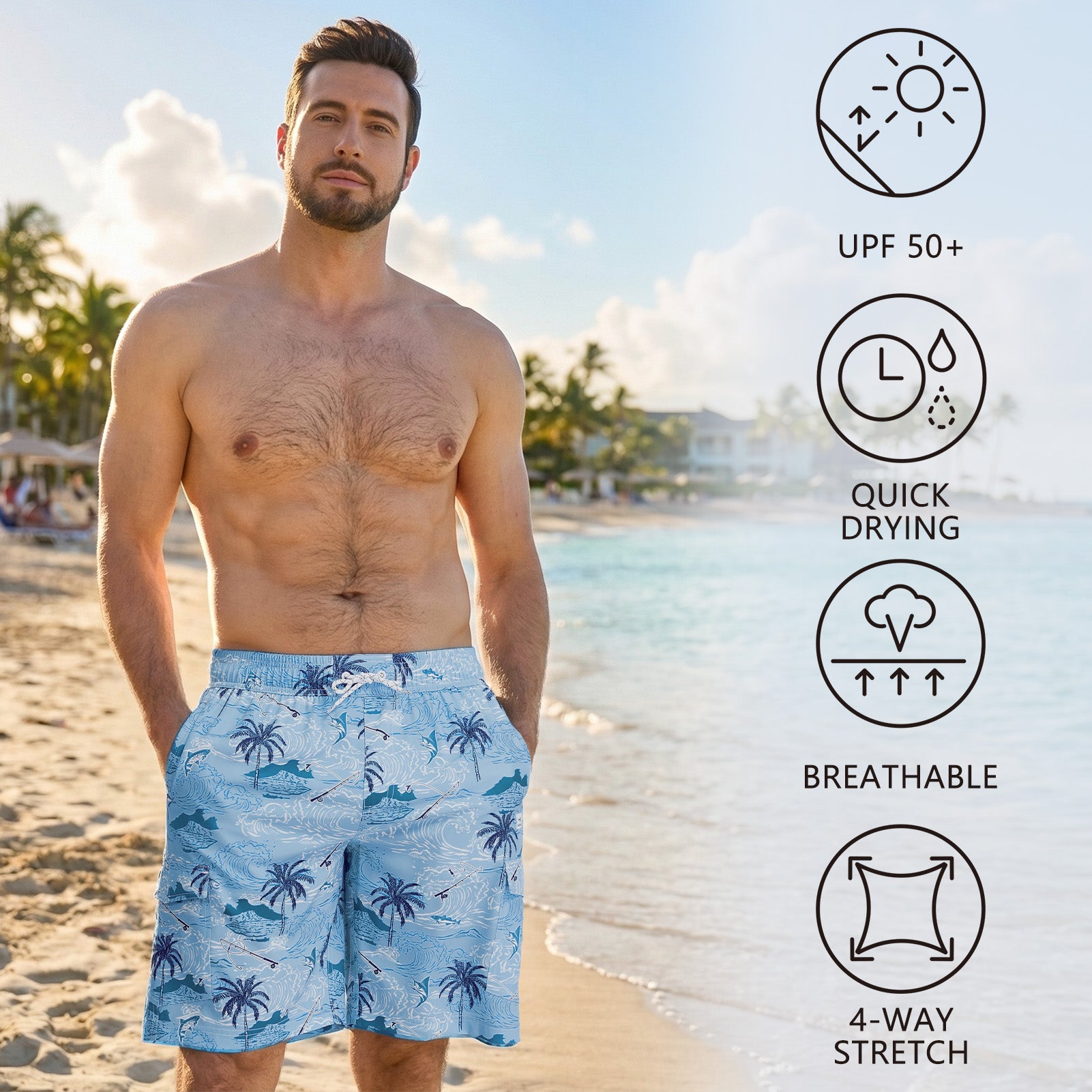 Crafted from a quick-drying, UPF 50+ fabric with four-way stretch (92% polyester, 8% spandex) and a chlorine-resistant print, these board shorts feature an adjustable drawstring waist, a supportive mesh liner, and four durable pockets. The knee-length design provides full coverage and unrestricted mobility. Perfect for water sports like swimming, surfing and paddling, they are equally ideal for fishing, hiking, workouts, or everyday casual wear.