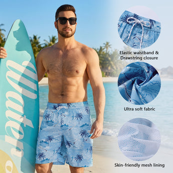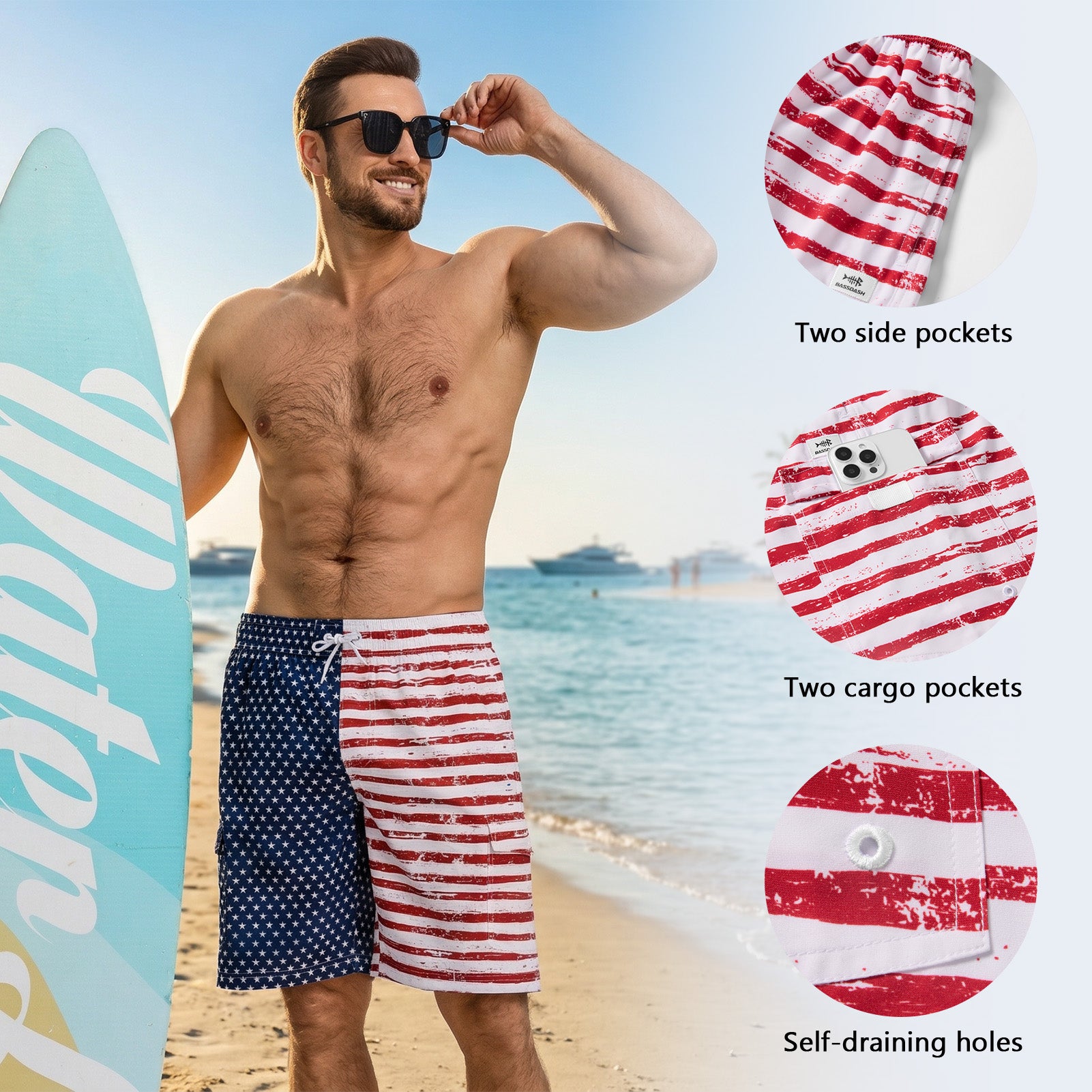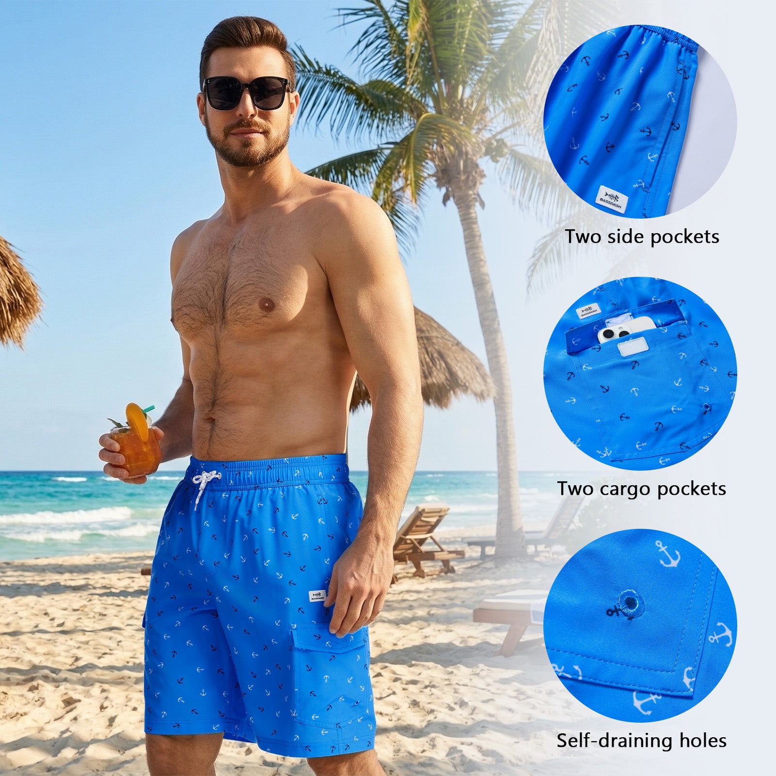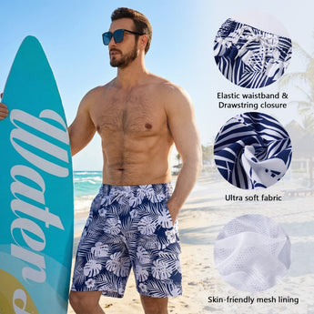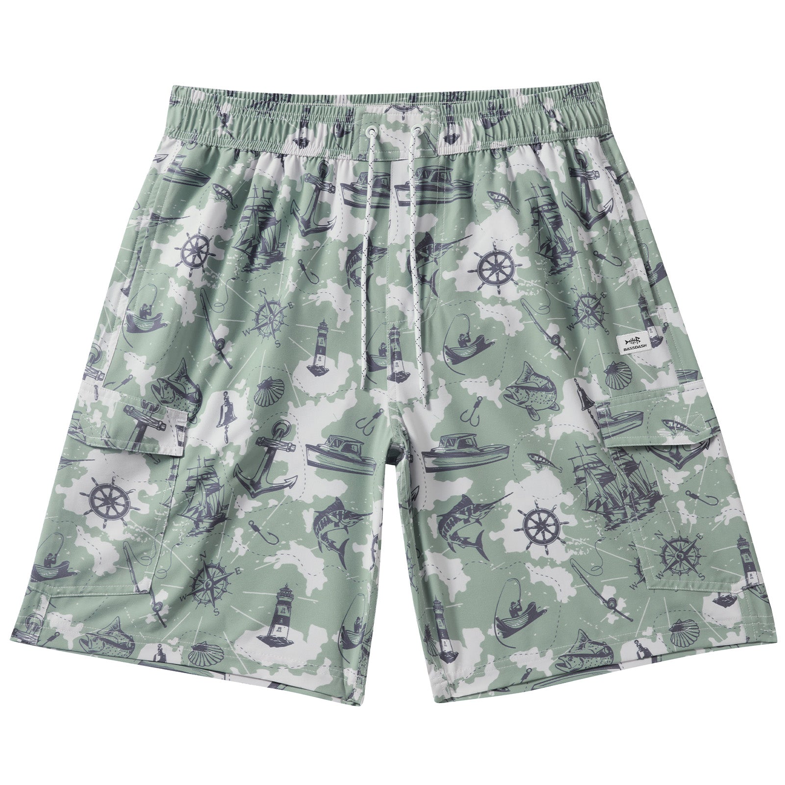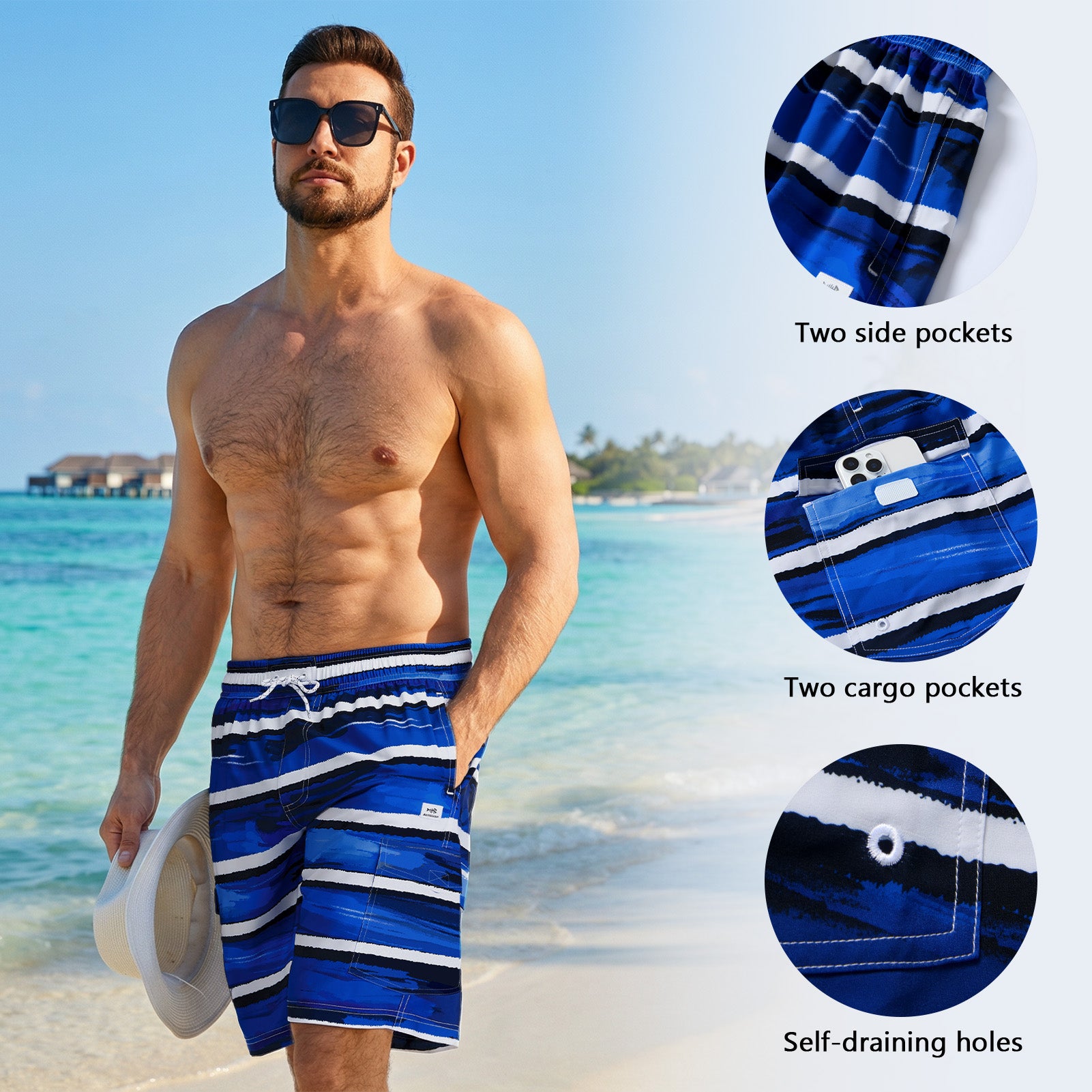 Crafted from a quick-drying, UPF 50+ fabric with four-way stretch (92% polyester, 8% spandex) and a chlorine-resistant print, these board shorts feature an adjustable drawstring waist, a supportive mesh liner, and four durable pockets. The knee-length design provides full coverage and unrestricted mobility. Perfect for water sports like swimming, surfing and paddling, they are equally ideal for fishing, hiking, workouts, or everyday casual wear.