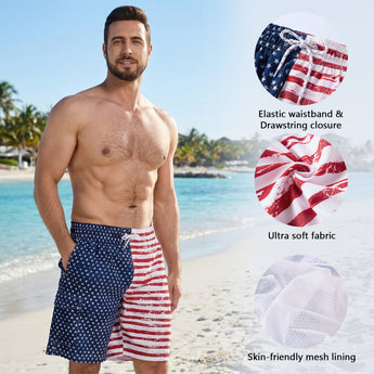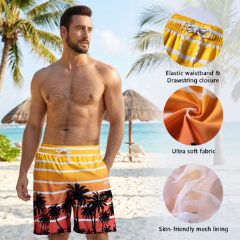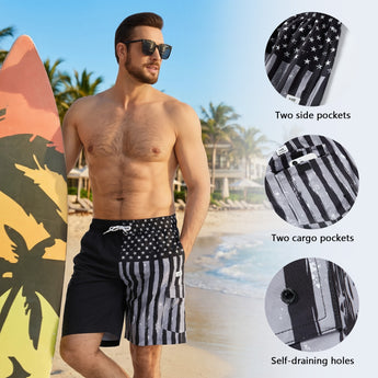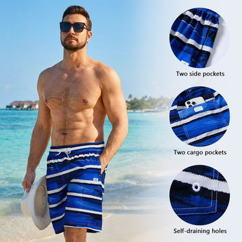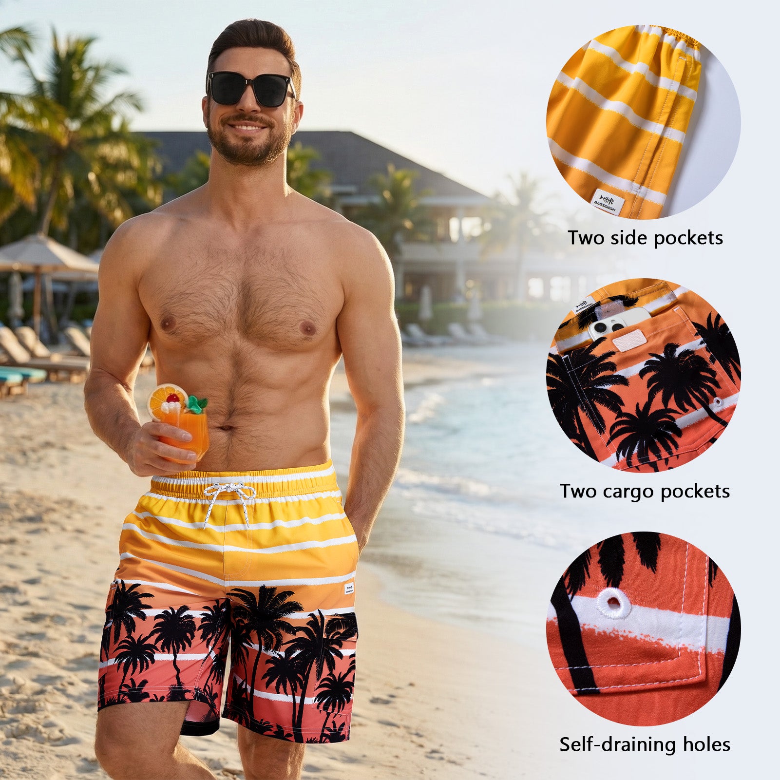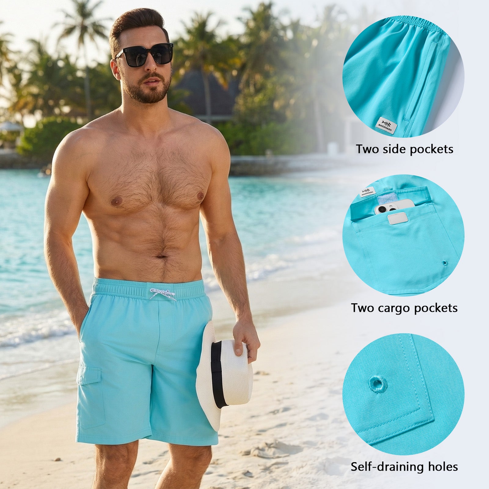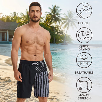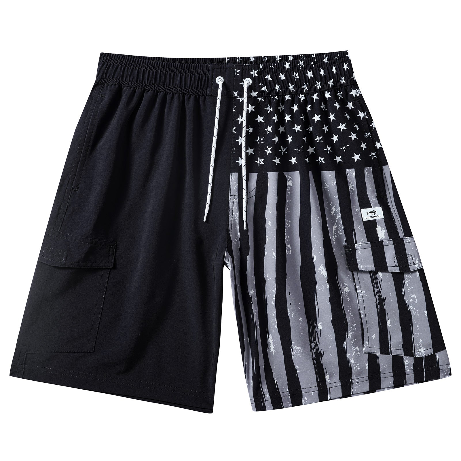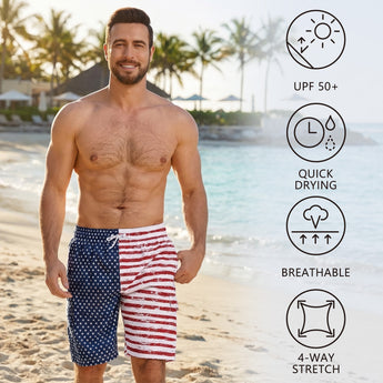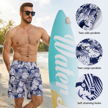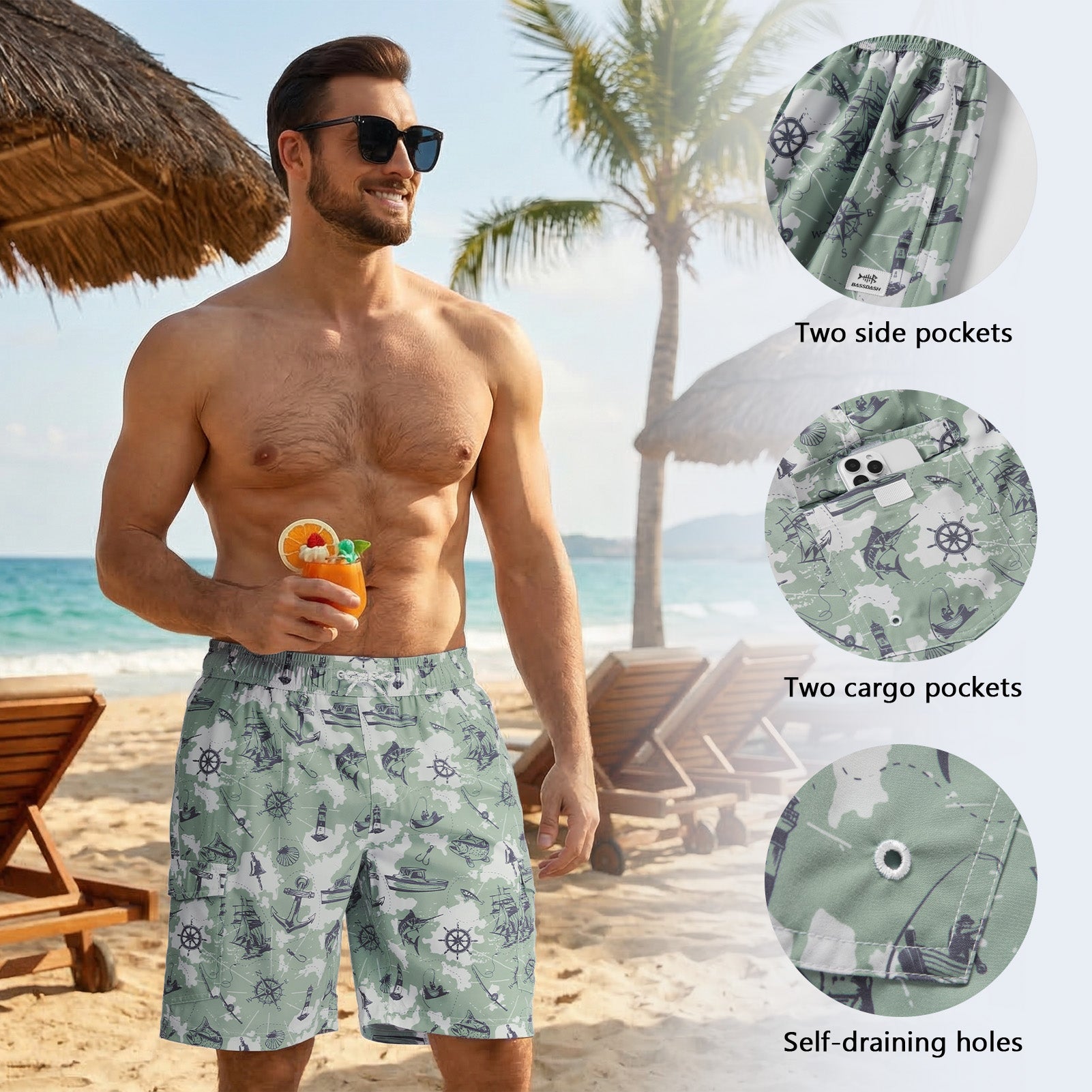 Crafted from a quick-drying, UPF 50+ fabric with four-way stretch (92% polyester, 8% spandex) and a chlorine-resistant print, these board shorts feature an adjustable drawstring waist, a supportive mesh liner, and four durable pockets. The knee-length design provides full coverage and unrestricted mobility. Perfect for water sports like swimming, surfing and paddling, they are equally ideal for fishing, hiking, workouts, or everyday casual wear.