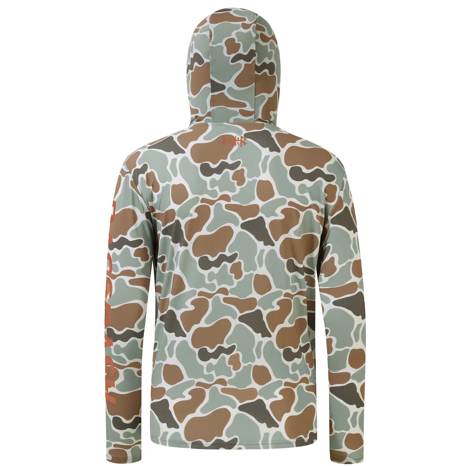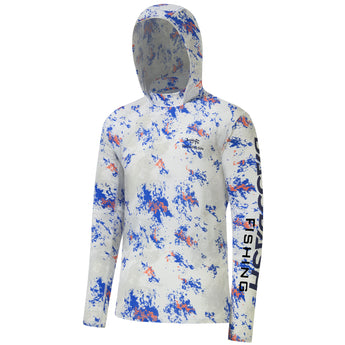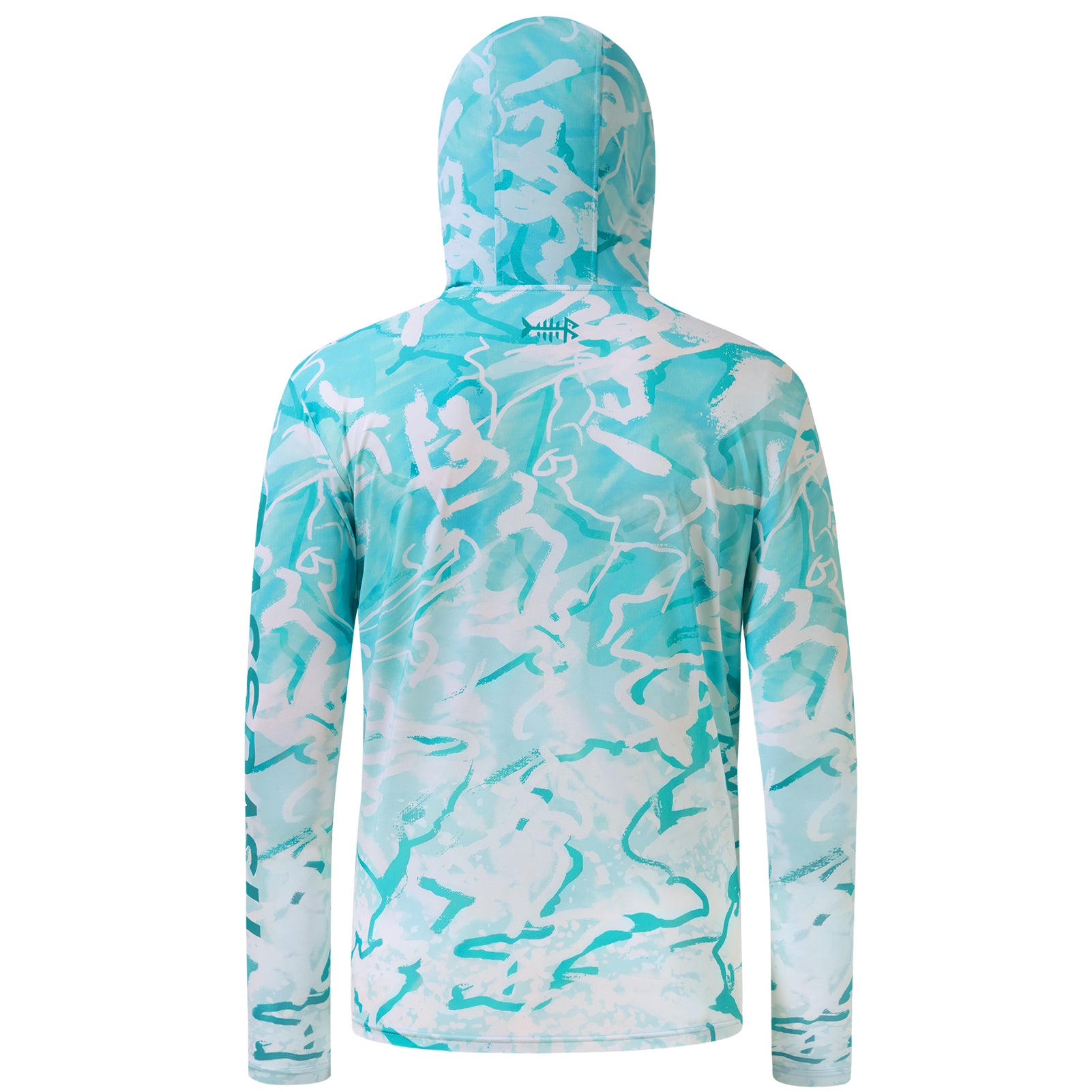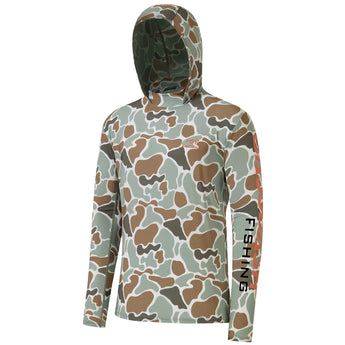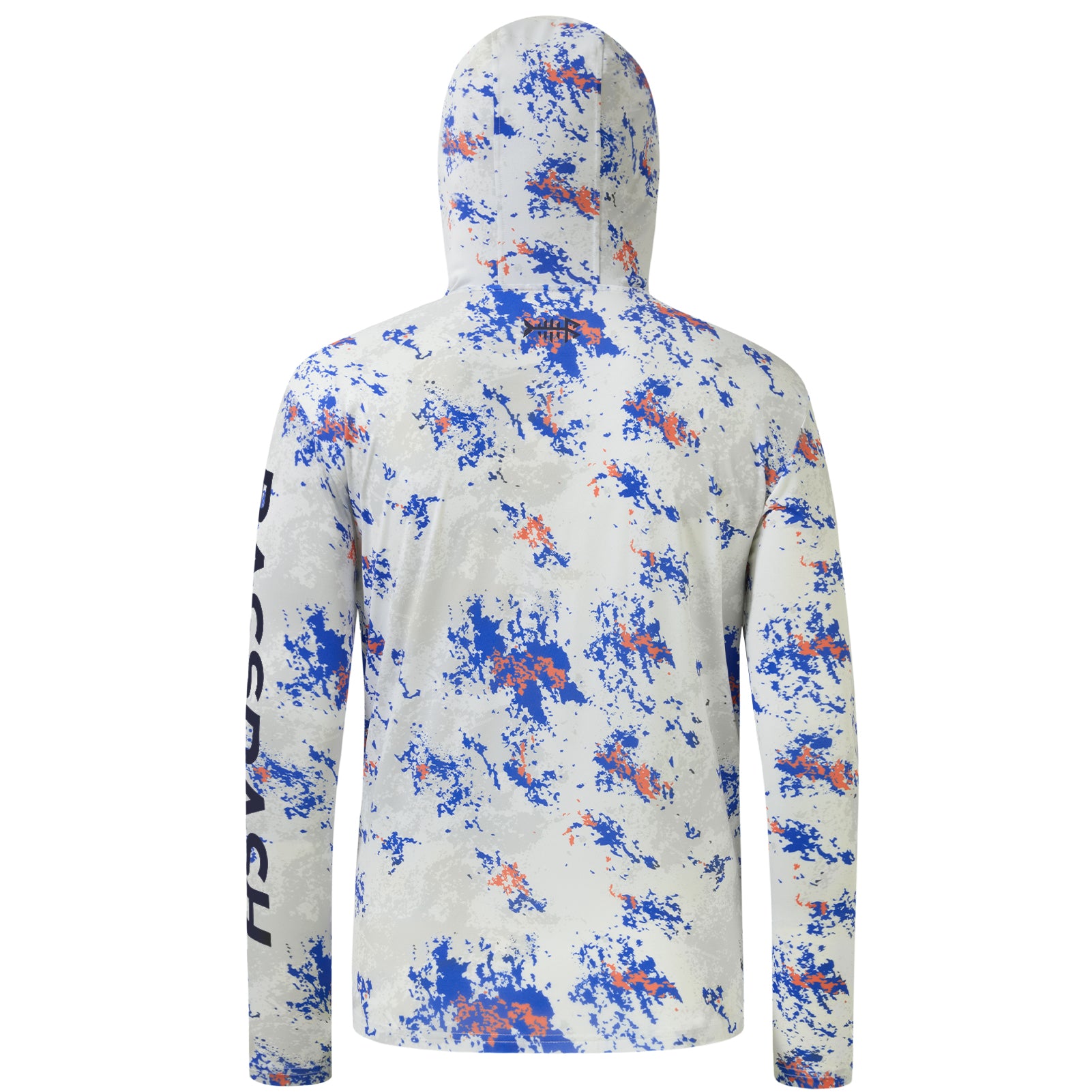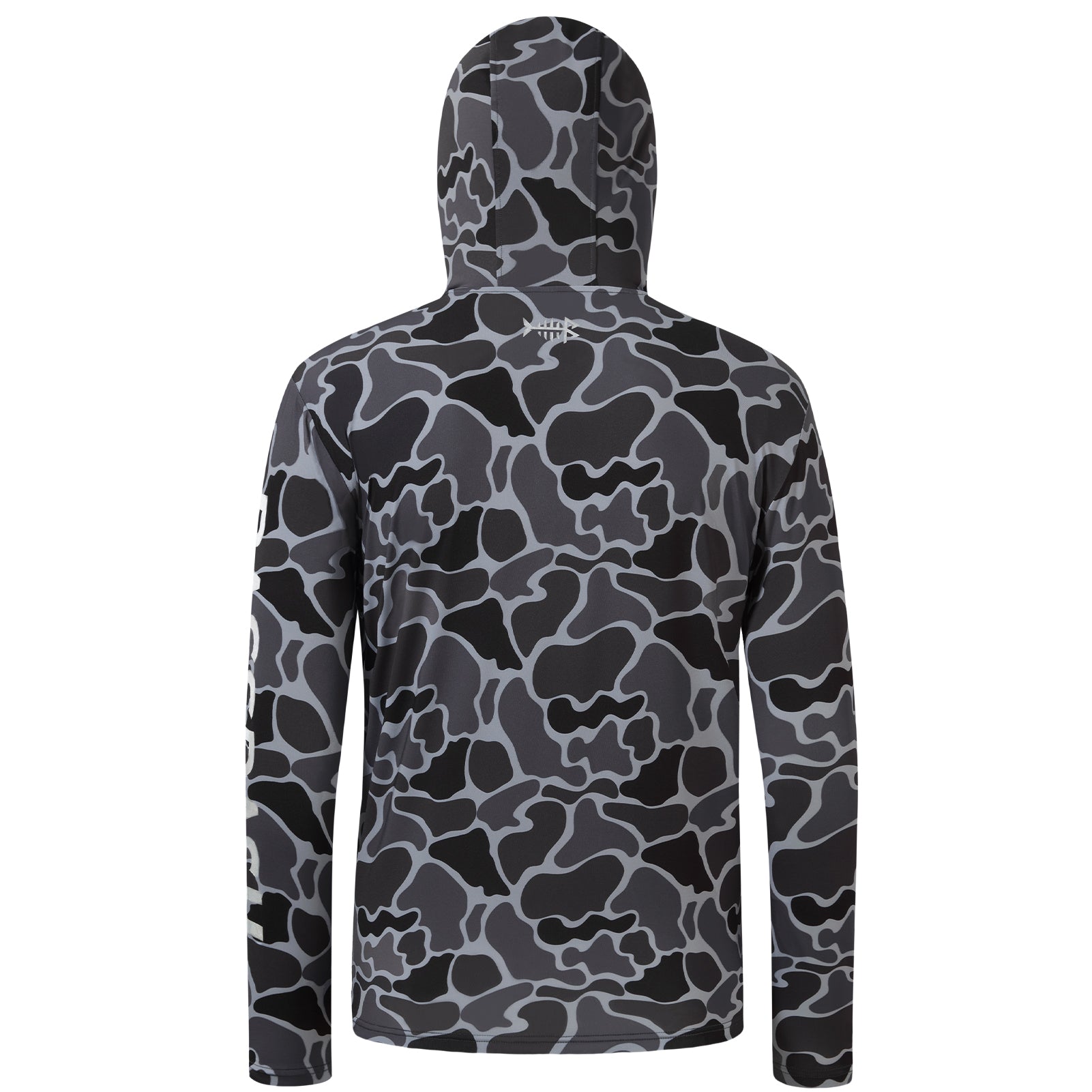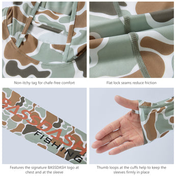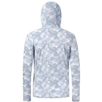 Designed for sun-safe performance, this men's camo long-sleeve hoodie features UPF 50+ protection, quick-dry 4-way stretch fabric, and a nature-inspired camouflage print. With practical thumb loops, a mock turtleneck, and a hood, it ensures full coverage and comfort. Perfect for fishing, hiking, and casual wear, it keeps you protected and dry all day.