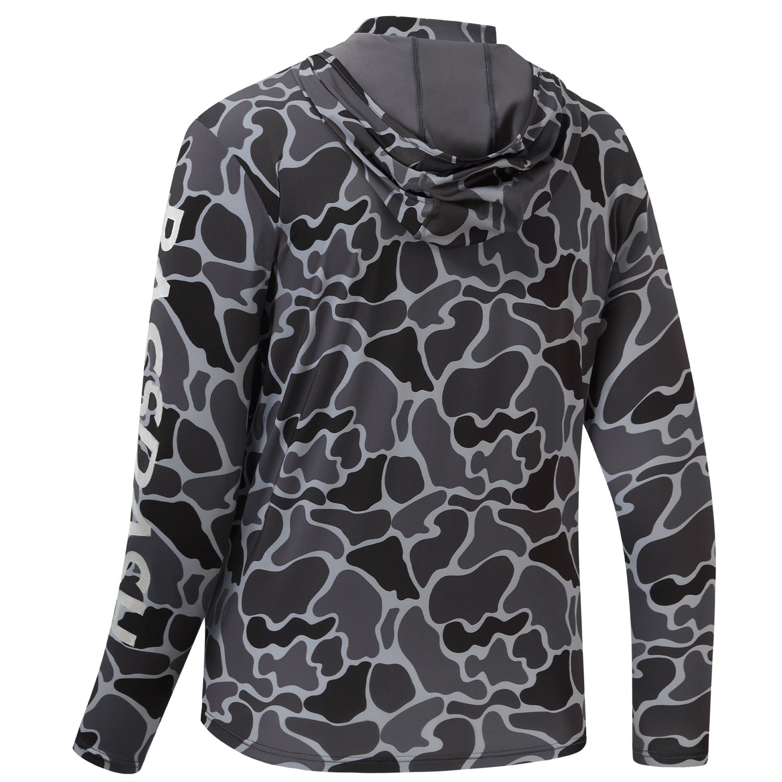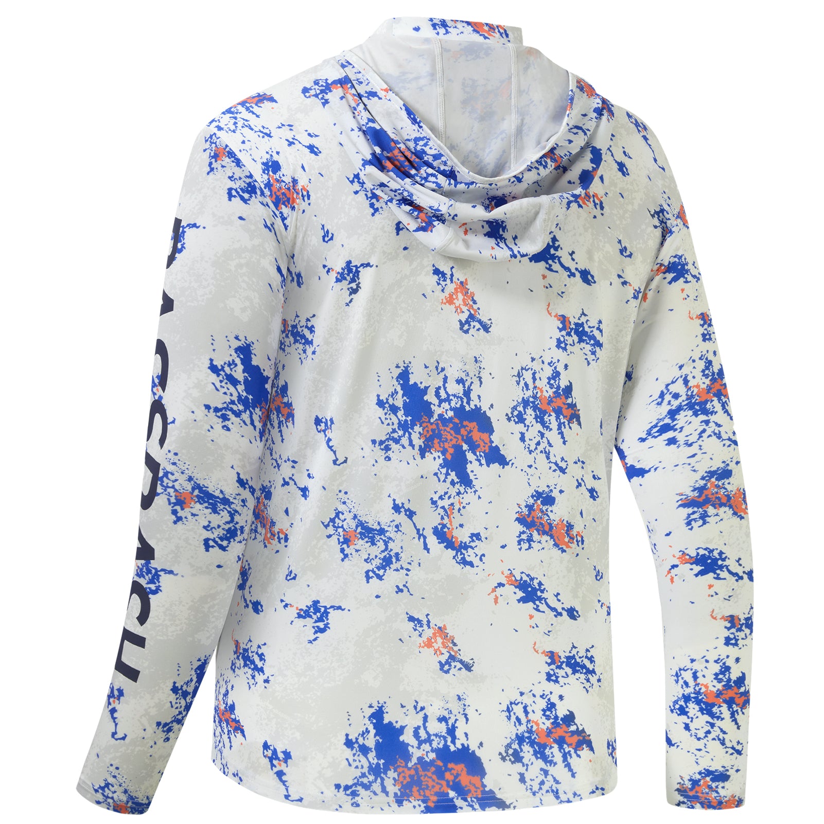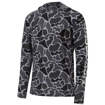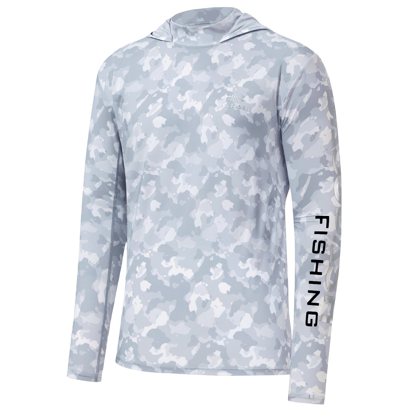 Designed for sun-safe performance, this men's camo long-sleeve hoodie features UPF 50+ protection, quick-dry 4-way stretch fabric, and a nature-inspired camouflage print. With practical thumb loops, a mock turtleneck, and a hood, it ensures full coverage and comfort. Perfect for fishing, hiking, and casual wear, it keeps you protected and dry all day.