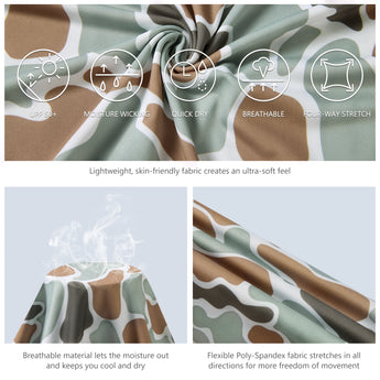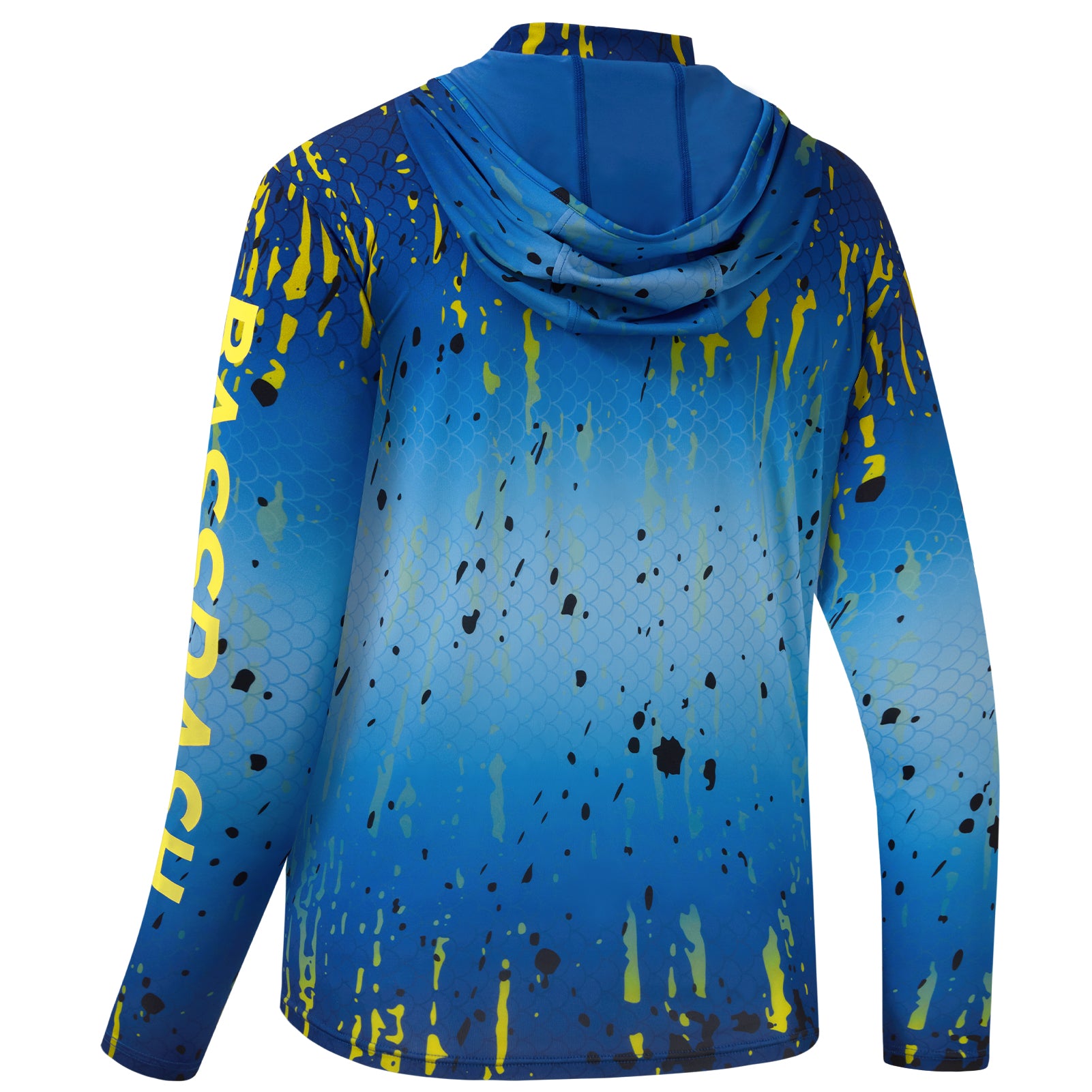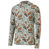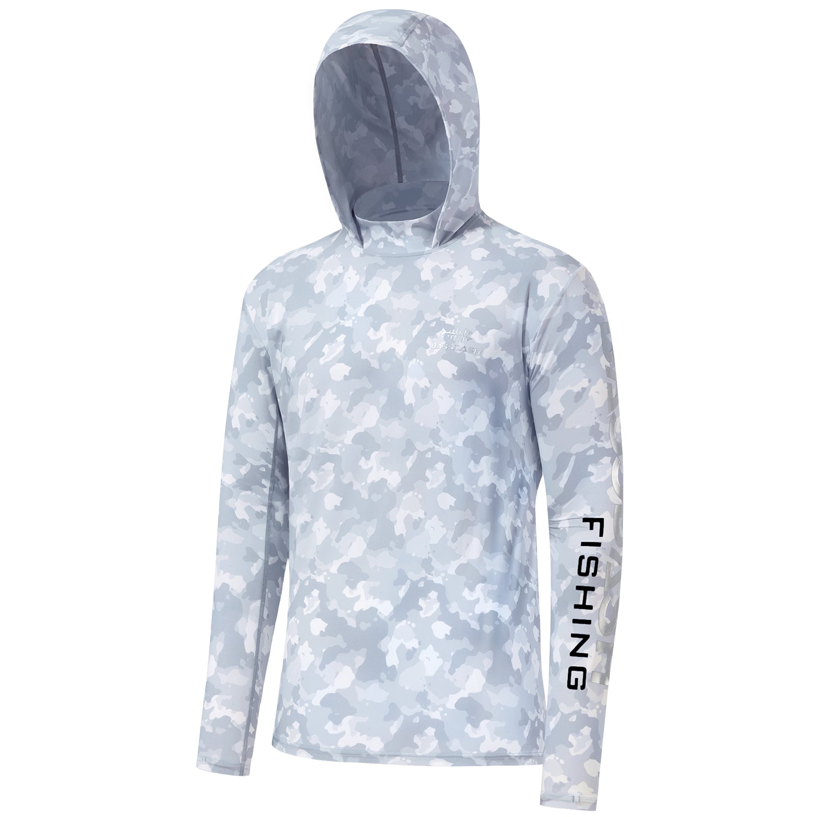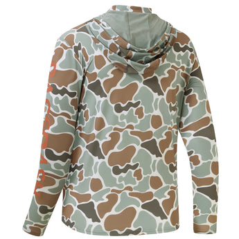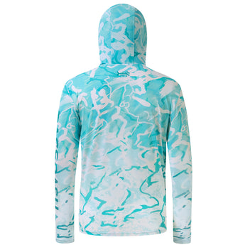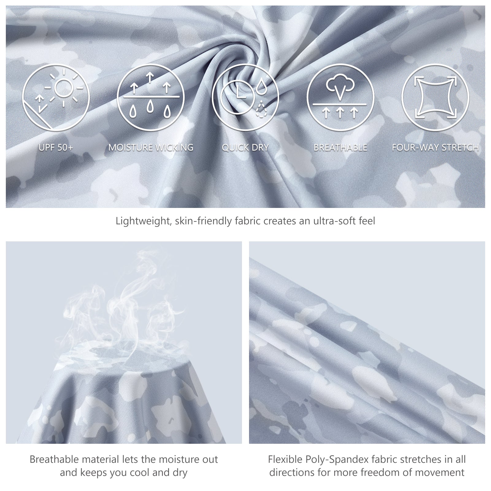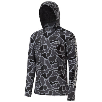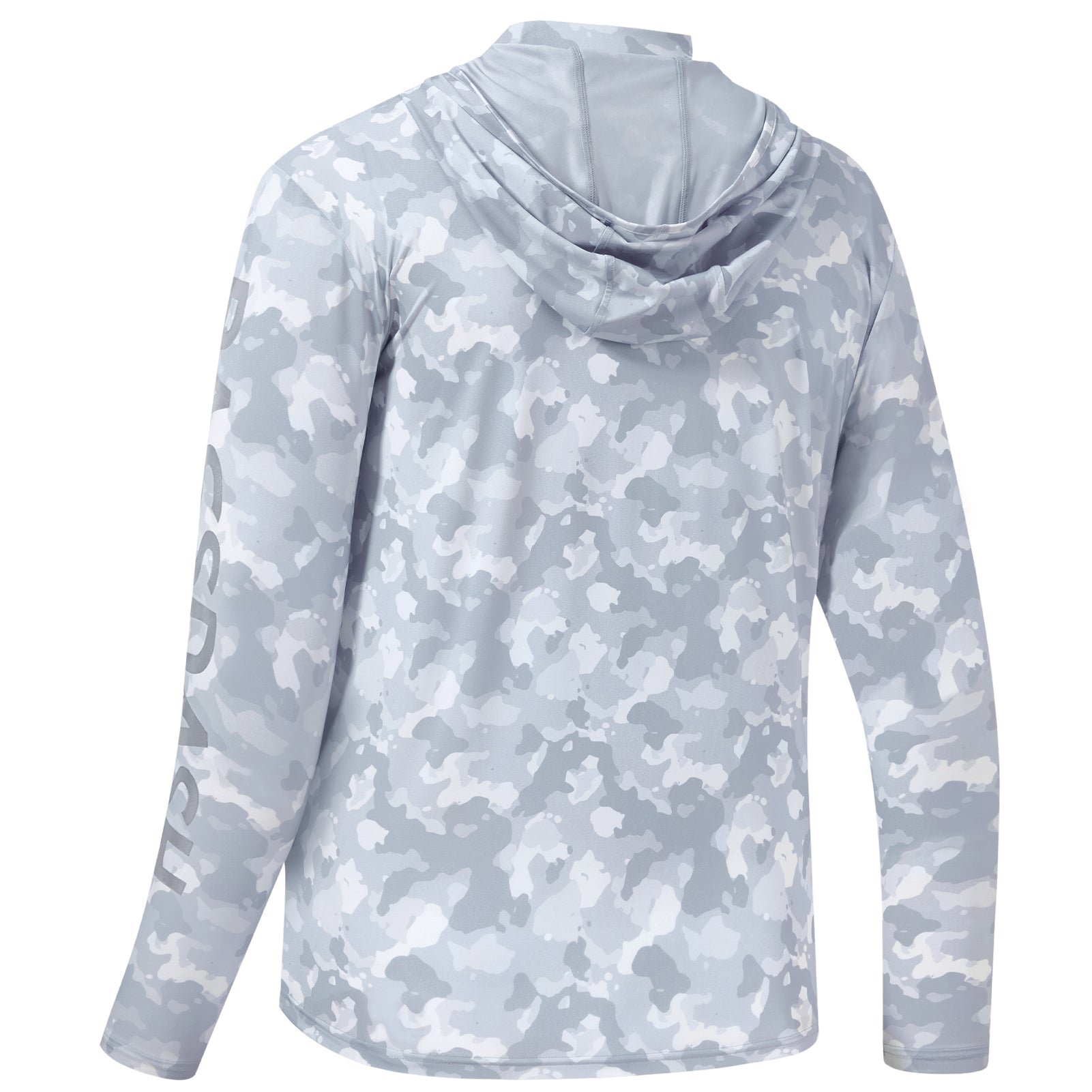 Designed for sun-safe performance, this men's camo long-sleeve hoodie features UPF 50+ protection, quick-dry 4-way stretch fabric, and a nature-inspired camouflage print. With practical thumb loops, a mock turtleneck, and a hood, it ensures full coverage and comfort. Perfect for fishing, hiking, and casual wear, it keeps you protected and dry all day.