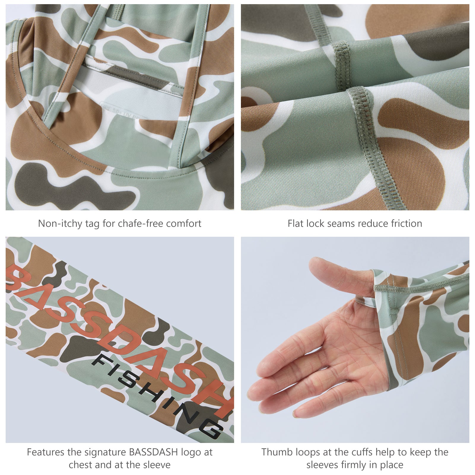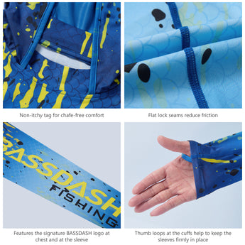 Bassdash sun shirts use advanced knitted UV protection UPF 50+ fabrics, shielding against harmful UV rays during extended outdoor excursions.