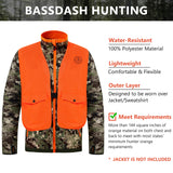 This BASSDASH lightweight high visibility vest is designed to keep you safe, visible, and comfortable in any environment. High visible blaze orange fabric (over 144 square inches in front/back) meets state hunting requirements. Durable, quiet polyester ensures stealth mobility, while the water-resistant surface makes cleaning dirt and blood stains easy. Features a quick-release front buckle, adjustable side straps that prevent overheating, and two snap pockets for essentials. This safety vest is perfect for all season hunts.