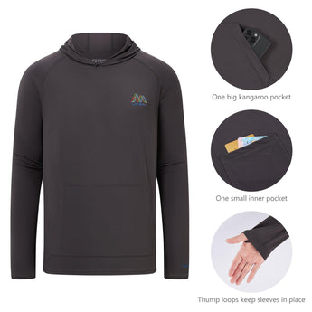 UVSAI Men’s Hoodie Shirt UPF 50+ Permanent UV Protection T-Shirts With Kangaroo Pocket